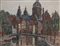 Mario Vellani Marchi (Modena 1895 - Milano 1979) "Vecchia Amsterdam" 1957 olio su cartone (23.3x30) Siglato e datato in basso a destra Al retro: firmato, titolato e datato In cornice