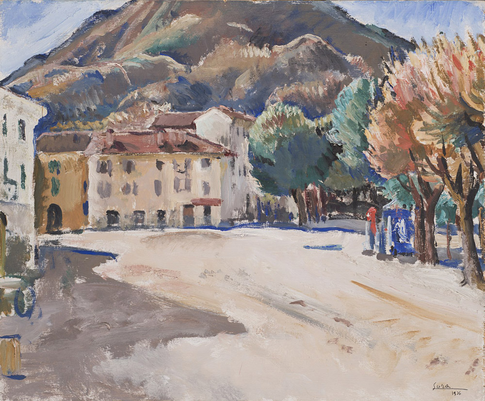 Orlando Sora (Fano 1903 - Lecco 1981) "Scorcio di Lecco" 1926 tecnica mista su tavola (cm 46.5x55.5) Firmato e datato in basso a destra In cornice