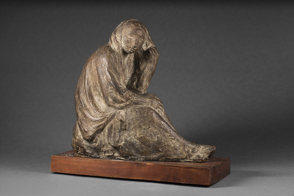 Filippo Tallone (Torino 1902 - 1967) "Donna seduta" scultura in bronzo (h cm 33) poggiante su base in legno Tracce di firma sul retro Sotto la base: cartiglio Esposizione: 1959/1960 "VIII Quadriennale d'Arte di Roma. Cartiglio