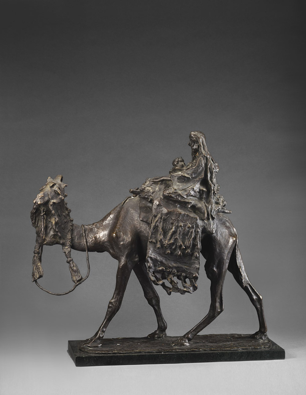 Ernesto Bazzaro (Milano 1859 - 1937) "Maternità beduina" scultura in bronzo (h cm 52) poggiante su base in marmo Firmata alla base