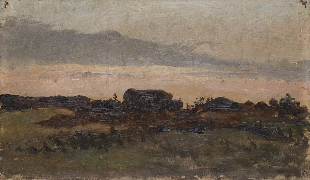 Plinio Nomellini (Livorno 1866 - Firenze 1943) "Paesaggio" bozzetto ad olio su tela (cm 27x46) Firmato in basso a destra (Difetti)