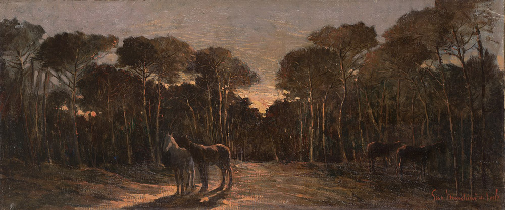 Giovanni Marchini (Forlì 1877 - 1946) "Il bacio del sole morente nella pineta...