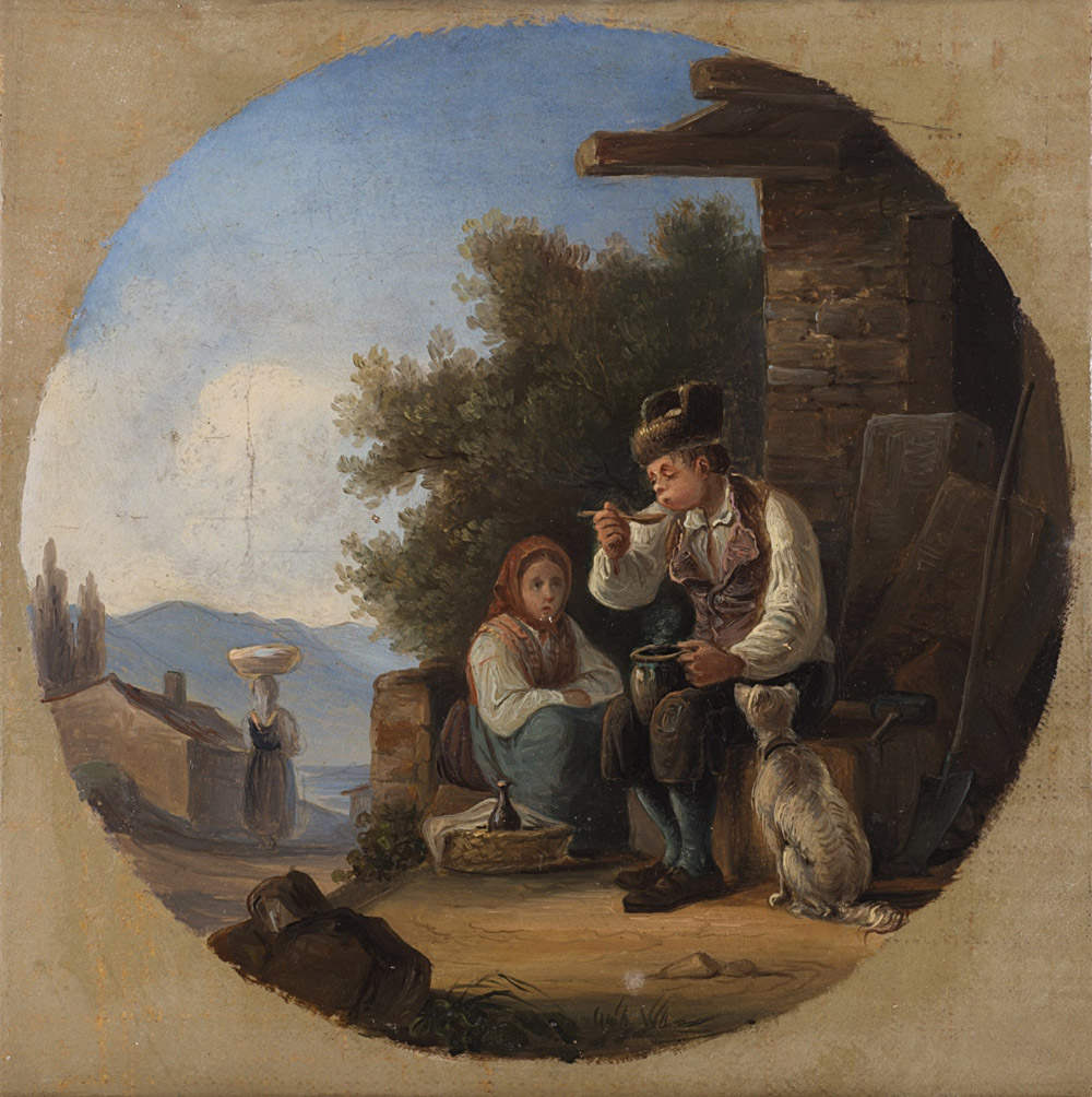 Lot 255 | Maestro del XIX Secolo "Il pranzo" olio su tela (cm 17x17) In cornice dell'epoca