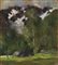 Ambrogio Antonio Alciati (Vercelli 1878 - Milano 1929) "Paesaggio montano" olio su compensato (cm 29x26) Firmato in basso a sinistra Al retro: dedica dell'artista datata Milano 1918 In cornice