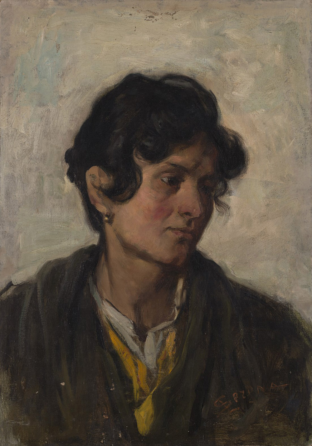 Luigi Serena (Montebellaluna 1855 - Treviso 1911) "Studio. Busto di donna" olio su tela (cm 51x35.5) Firmato in basso a destra Al retro: cartiglio con titolo In cornice