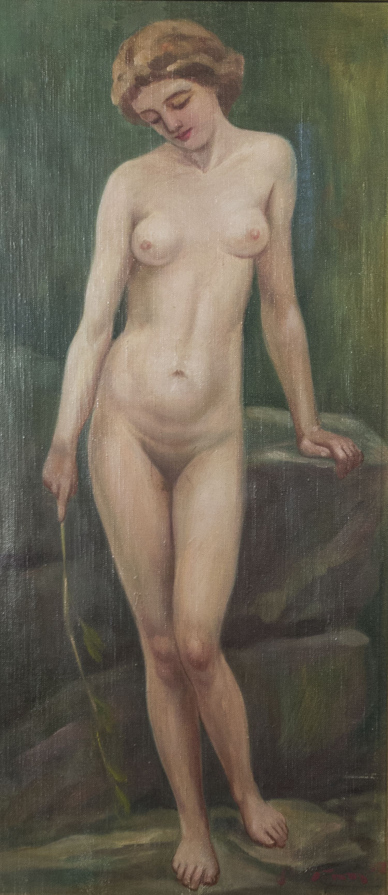 Metodio Ottolini (1882-1958) Nudo firma in basso a destra olio su tela cm 53x24