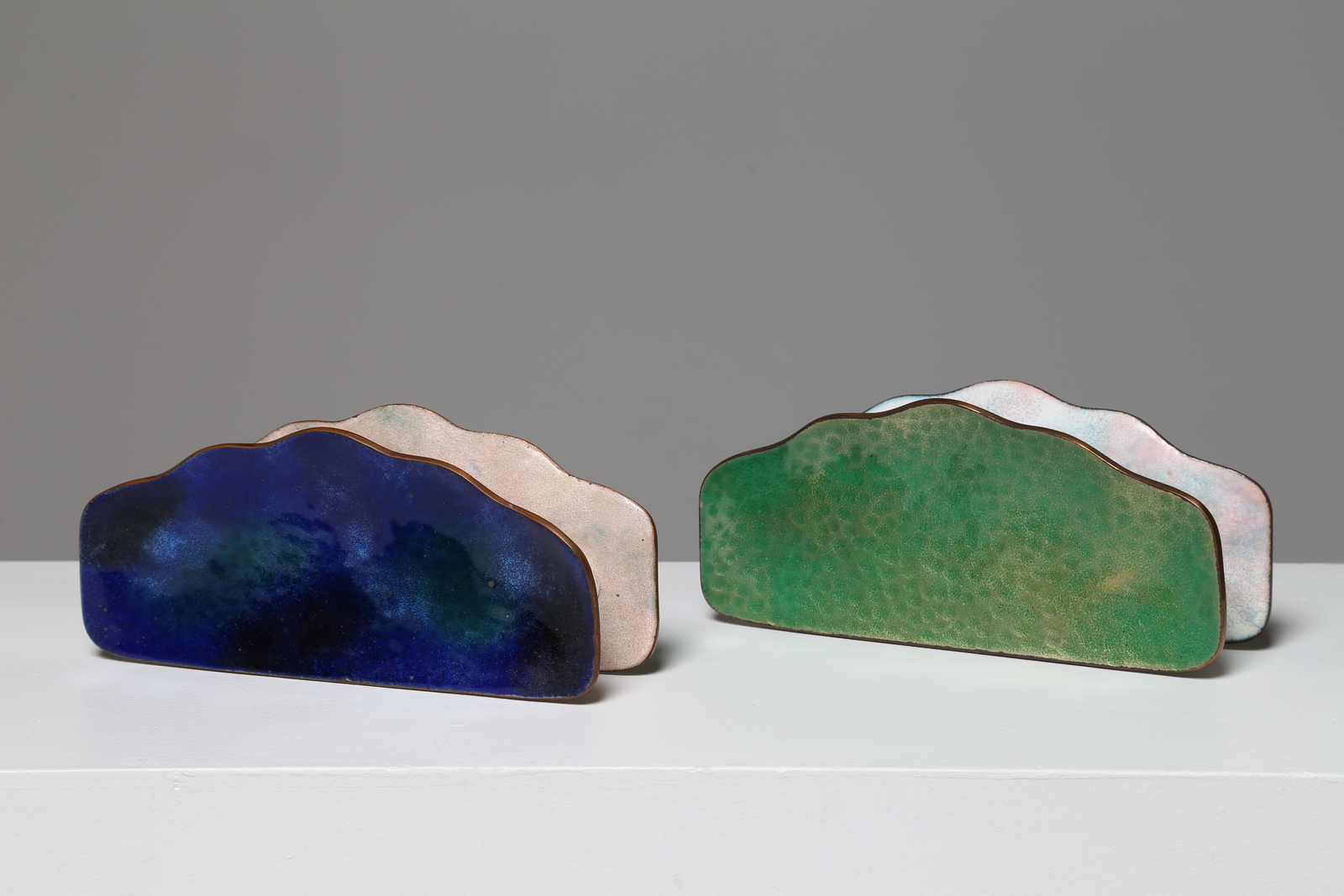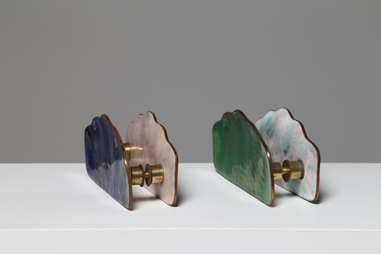 DE POLI PAOLO (1905 - 1996) Coppia di maniglie in rame smaltato, 1950 . Rame smaltato. Cm 11,00 x 25,00 x 8,00.