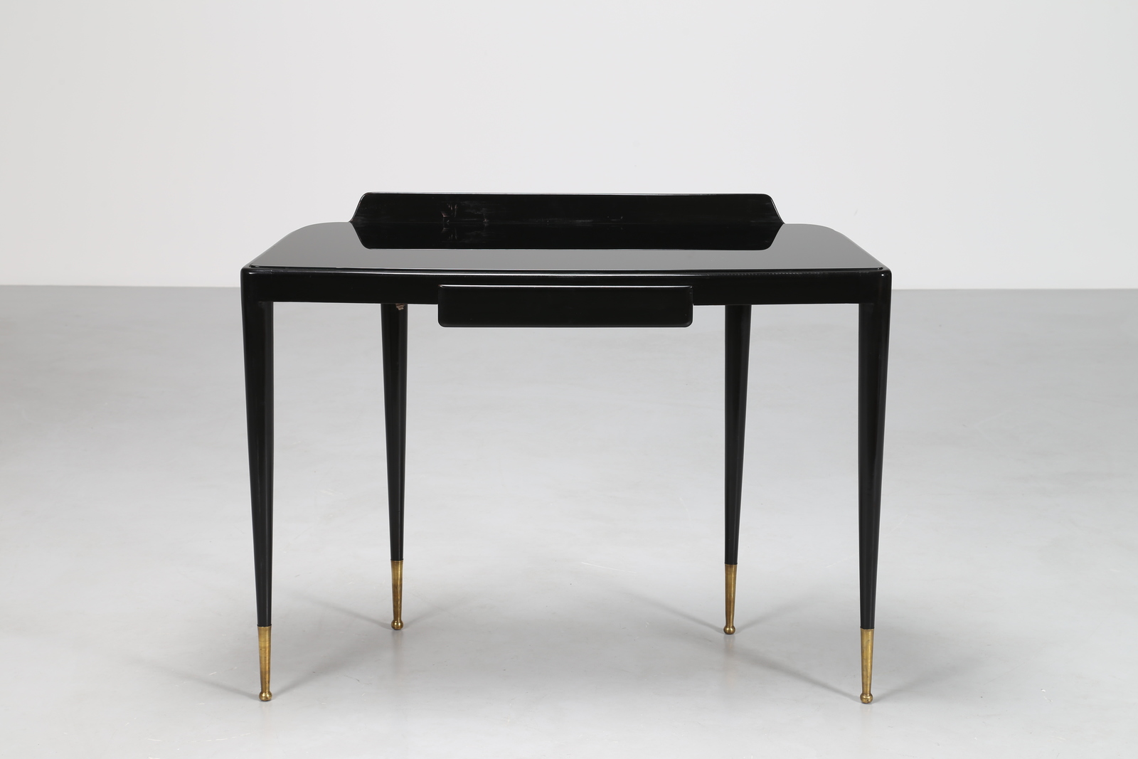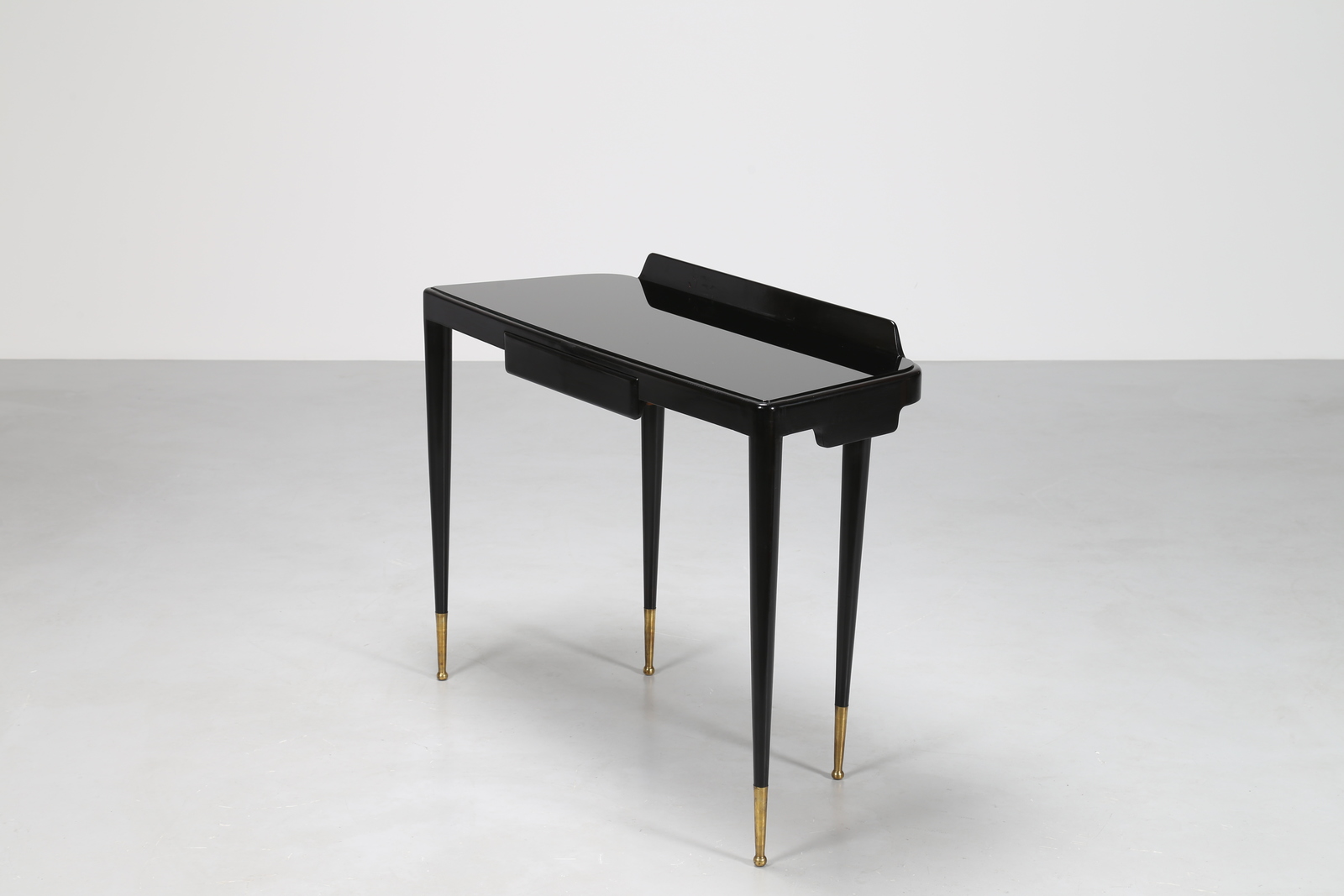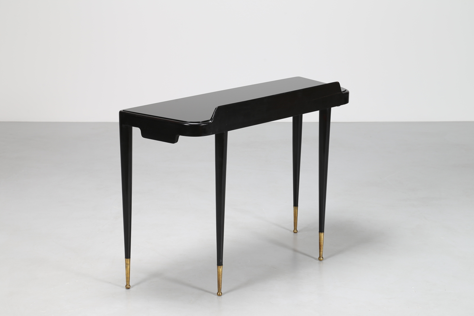 GARIBOLDI GIOVANNI (1908 - 1971) Attrib. Consolle legno ebanizzato puntali in ottone con piano in vetro opalino. 1940. Legno, ottone, vetro. Cm 114,50 x 87,00 x 45,00.