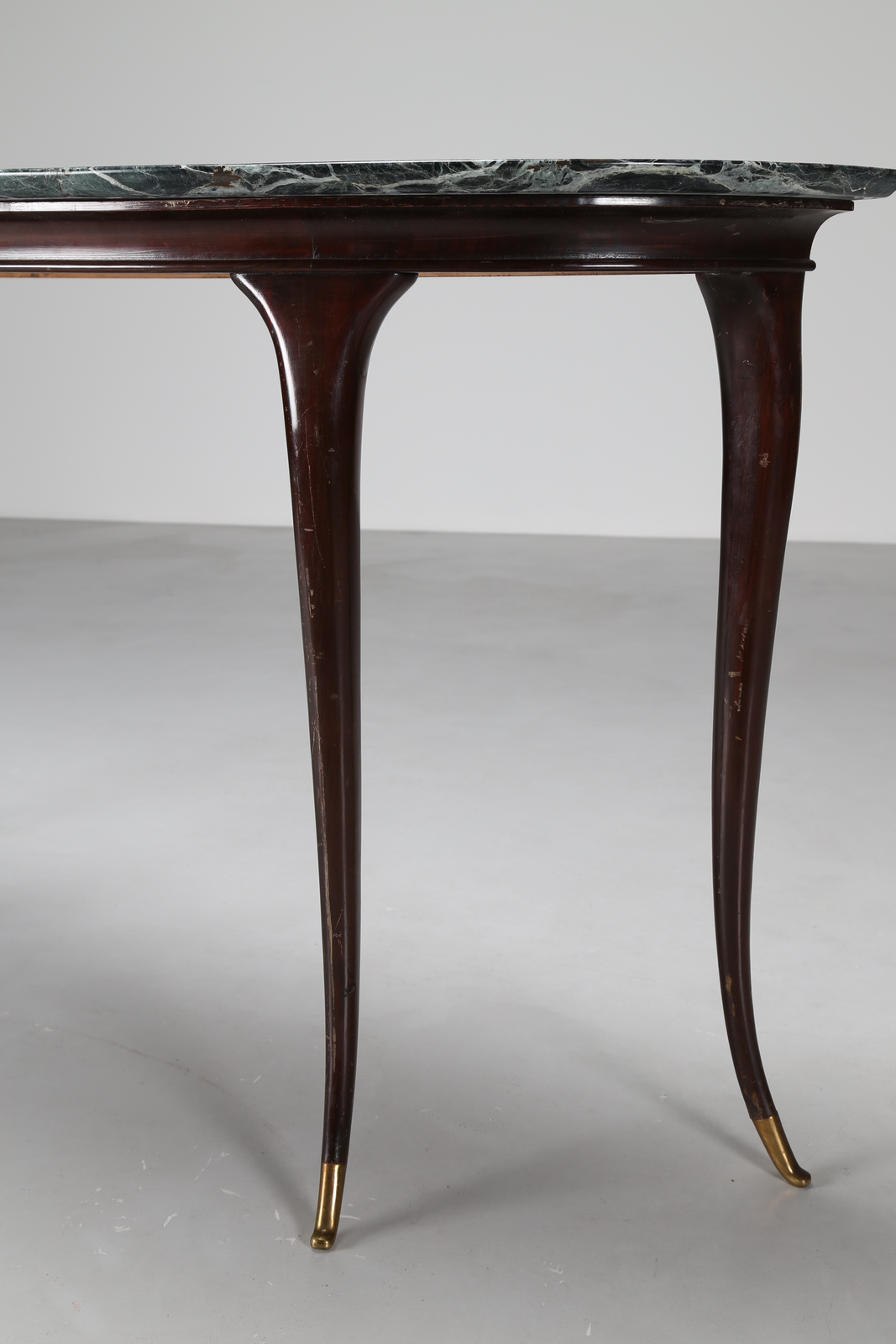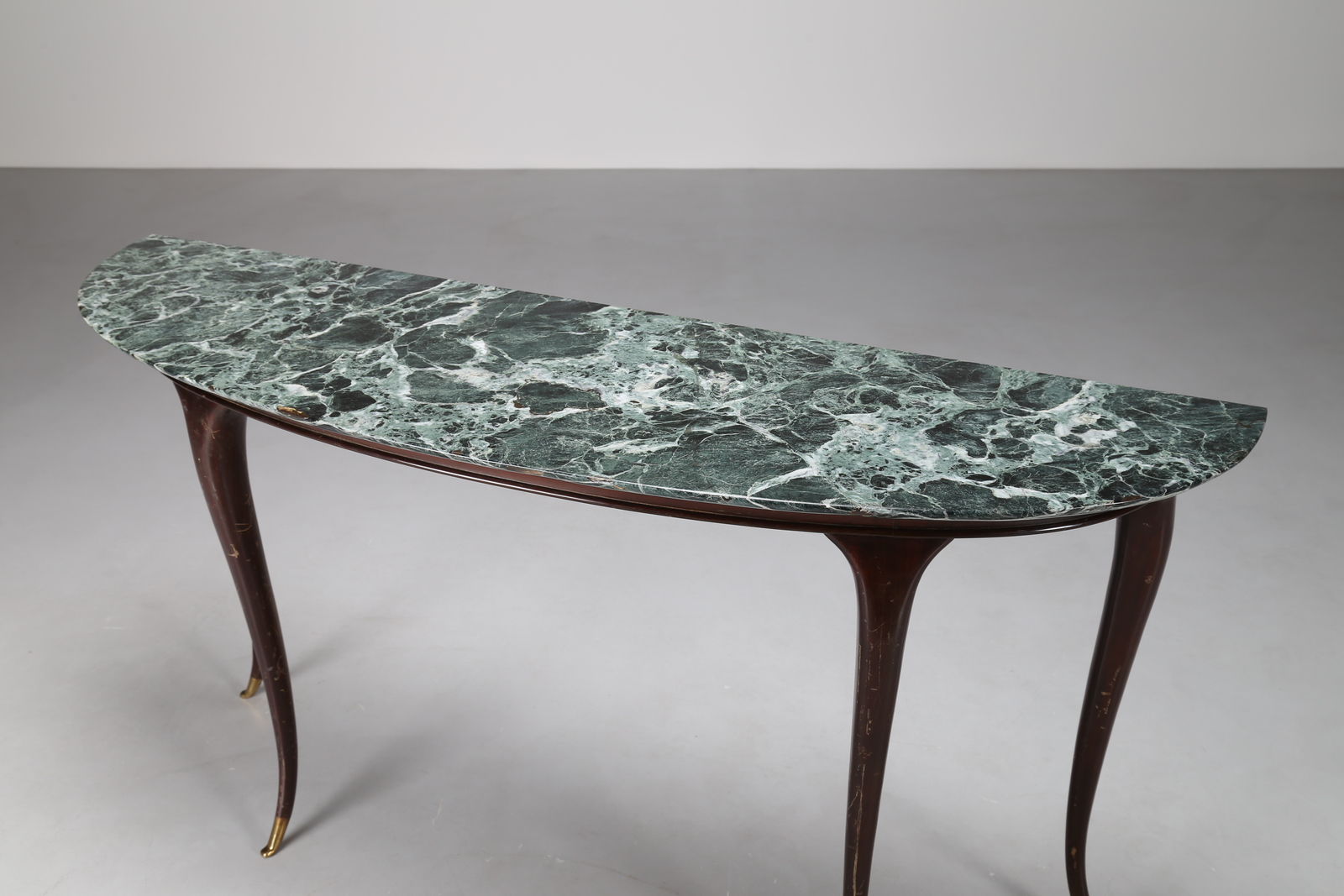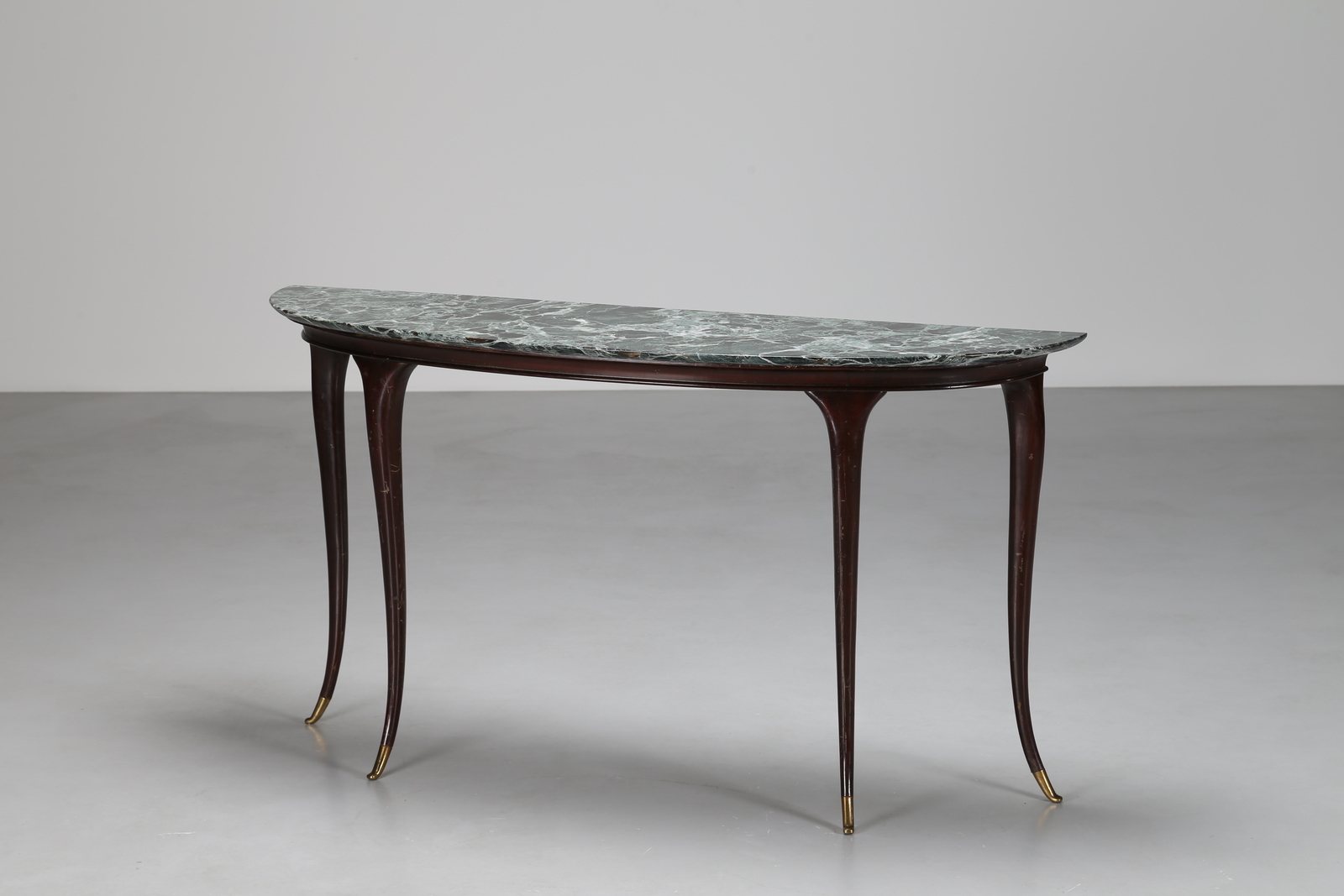 ULRICH GUGLIELMO Attrib. Elegante consolle in legno ebanizzato con piano in marmo di portovenere. Legno e marmo. Cm 145,50 x 79,00 x 40,00. anni 50