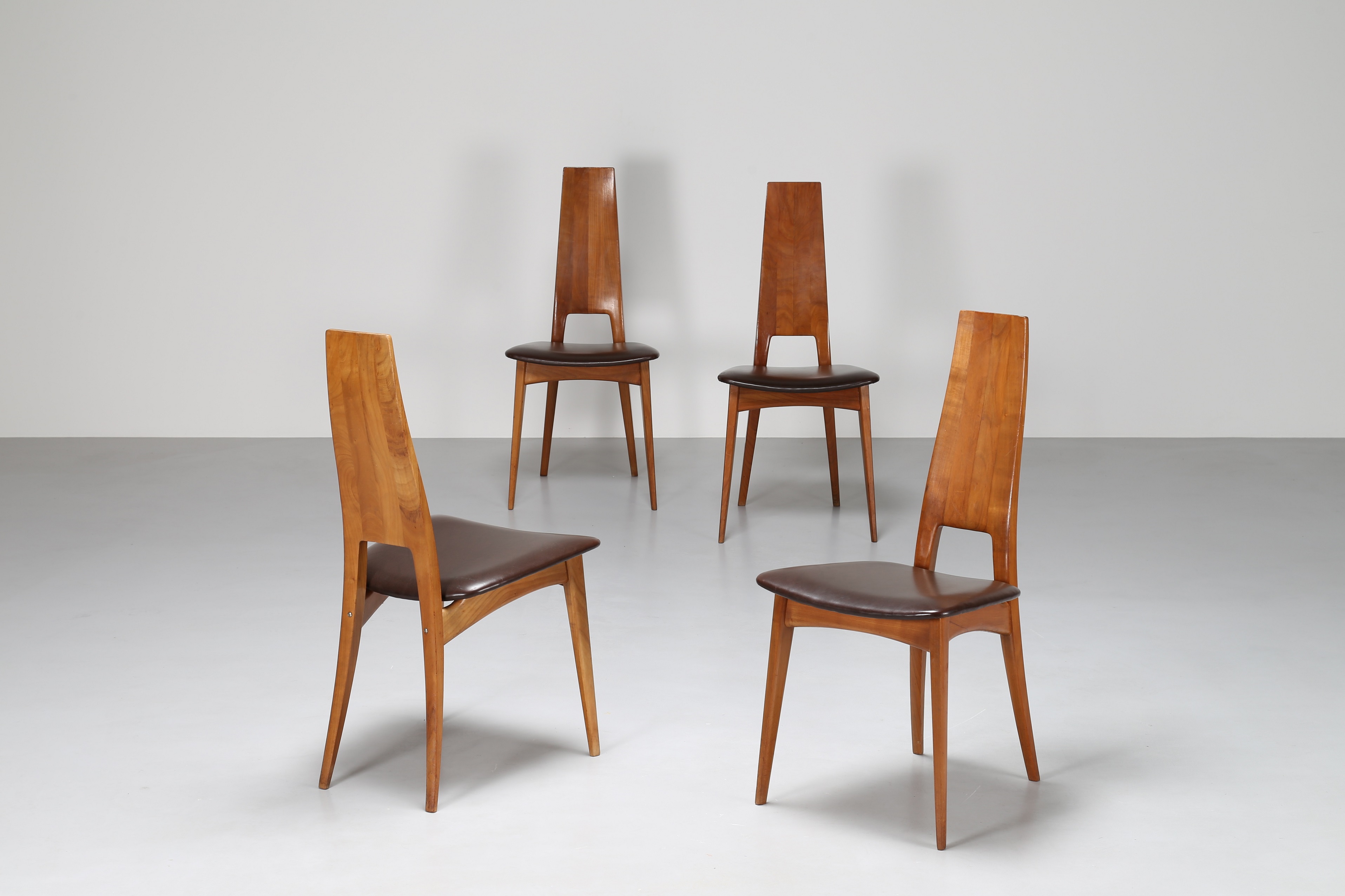 ANGELO MANGIAROTTI & ANTONIO MORASSUTTI Attrib. Quattro sedie in ciliegio e...