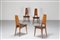 ANGELO MANGIAROTTI & ANTONIO MORASSUTTI Attrib. Quattro sedie in ciliegio e sky. Legno di ciliegio e sky. Cm 43,00 x 92,00 x 48,00.