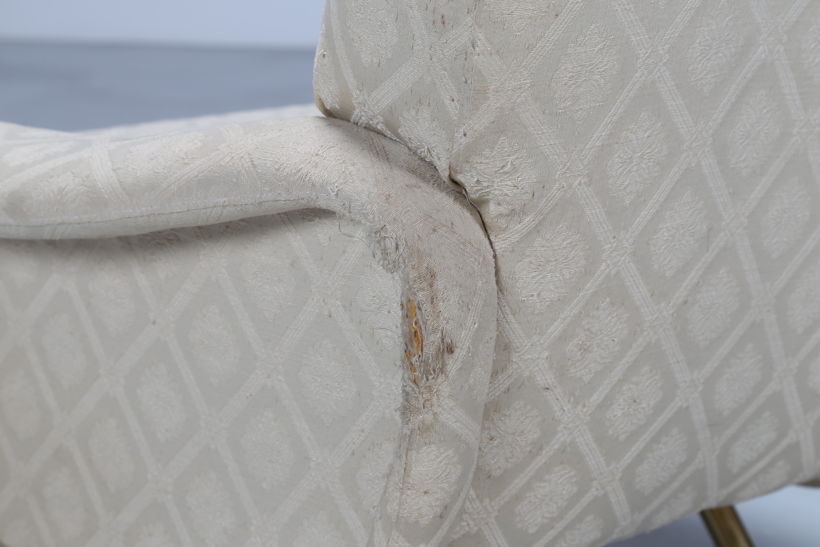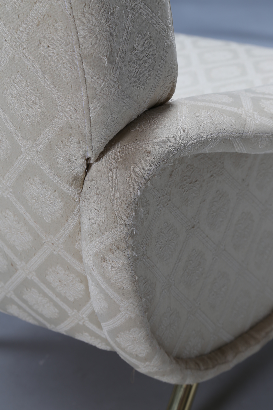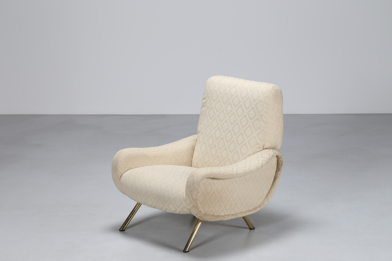 ZANUSO MARCO (1916 - 2001) Poltrona con gambe tubolari in ottone, imbottitura in gomma e rivestimento in tessuto, modello Lady. Prod. Arflex, 1951. Bib. Domus 293 aprile 1954, p. 76; Gillo Dorfles, Marco Zanuso designer, Editalia, Roma, 1971, p. 19; Irene de Guttry, Maria Paola Maino, Il mobile italiano degli anni ’40 e ’50, Laterza, Bari, 1992, p. 282; Giuliana Gramigna, Repertorio 1950-2000, Allemandi, Torino, 2003, p. 25 . Ottone e tessuto. Cm 79,00 x 82,00 x 85,00. anni 50