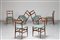 PONTI GIO' (1891 - 1979) Sei sedie modello Leggere prodotte nel 1954 dalla ditta Figli di Amedeo Cassina di Meda (Mi) Bib. F. Mautone, Gio Ponti e la committenza Fernandes, Electa Mondadori, Napoli 2009; A.Boisi, Ospitalità cercasi, in INTERNI n° 589, marzo 2009; Archivio Storico Cassina di Meda . Legno di frassino e tessuto. Cm 42,50 x 84,00 x 45,50. anni 50
