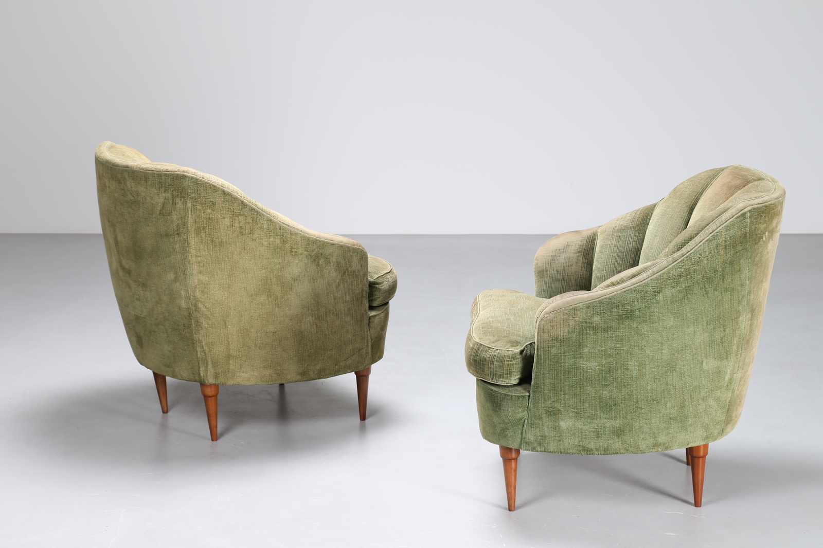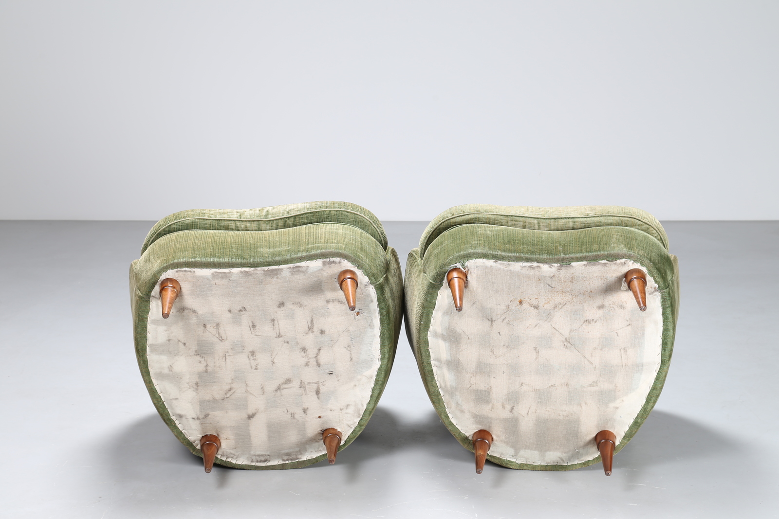 FRATELLI BORGHI Attrib. Coppia poltrone in velluto verde e piedini in legno, 1938 Cantù . Tessuto e legno. Cm 87,00 x 88,00 x 90,00. anni 50