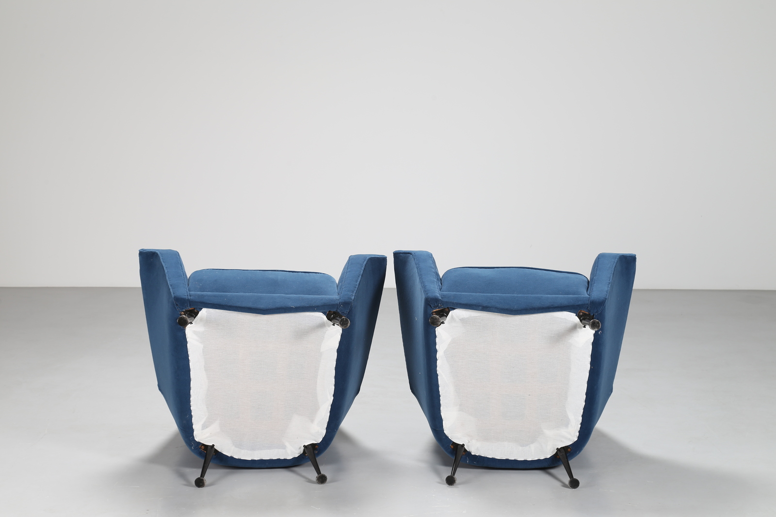Lot 206 | RADICE GIGI Coppia poltrone in tessuto blu con piedini in metallo laccato...
