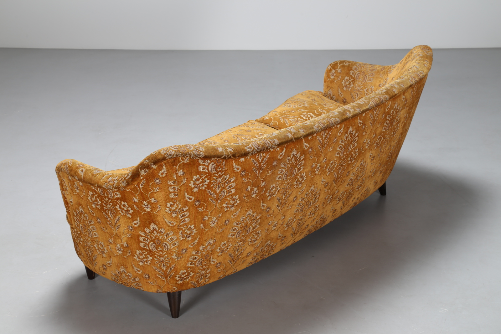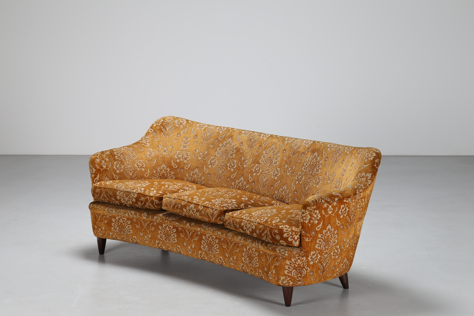 PONTI GIO' (1891 - 1979) Divano in tessuto giallo ocra a fiori con piedini in...