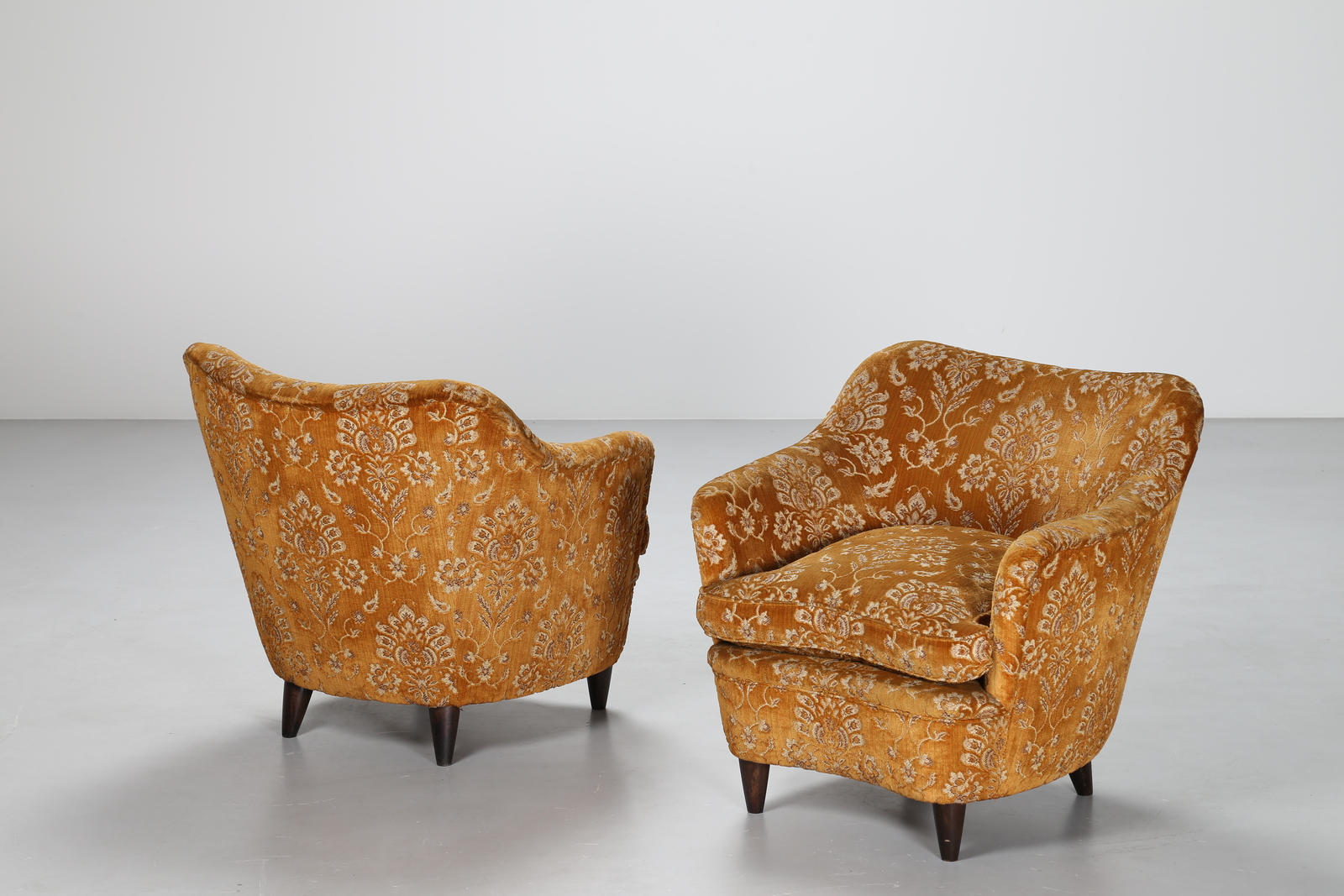 PONTI GIO' (1891 - 1979) Coppia poltrone in tessuto giallo ocra a fiori con...