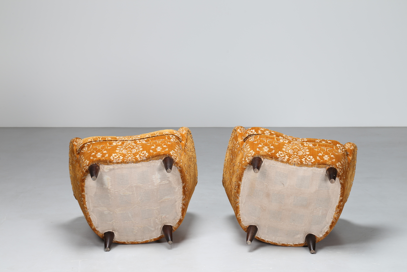 Lot 208 | PONTI GIO' (1891 - 1979) Coppia poltrone in tessuto giallo ocra a fiori con...