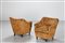PONTI GIO' (1891 - 1979) Coppia poltrone in tessuto giallo ocra a fiori con piedini in legno prod. Casa e Giardino 1938 Bib. Gio Ponti: Interni, Oggetti, Disegni, Falconi, pag. 115 (disegno illustrato) Expertise a cura di Salvatore Licitra Archives Gio Ponti Milano. Tessuto e legno. Cm 75,00 x 73,50 x 76,00. anni 30