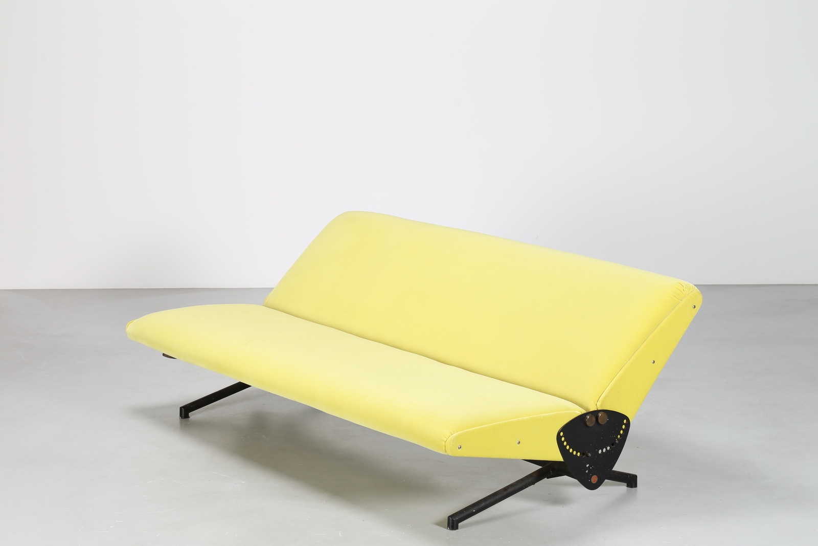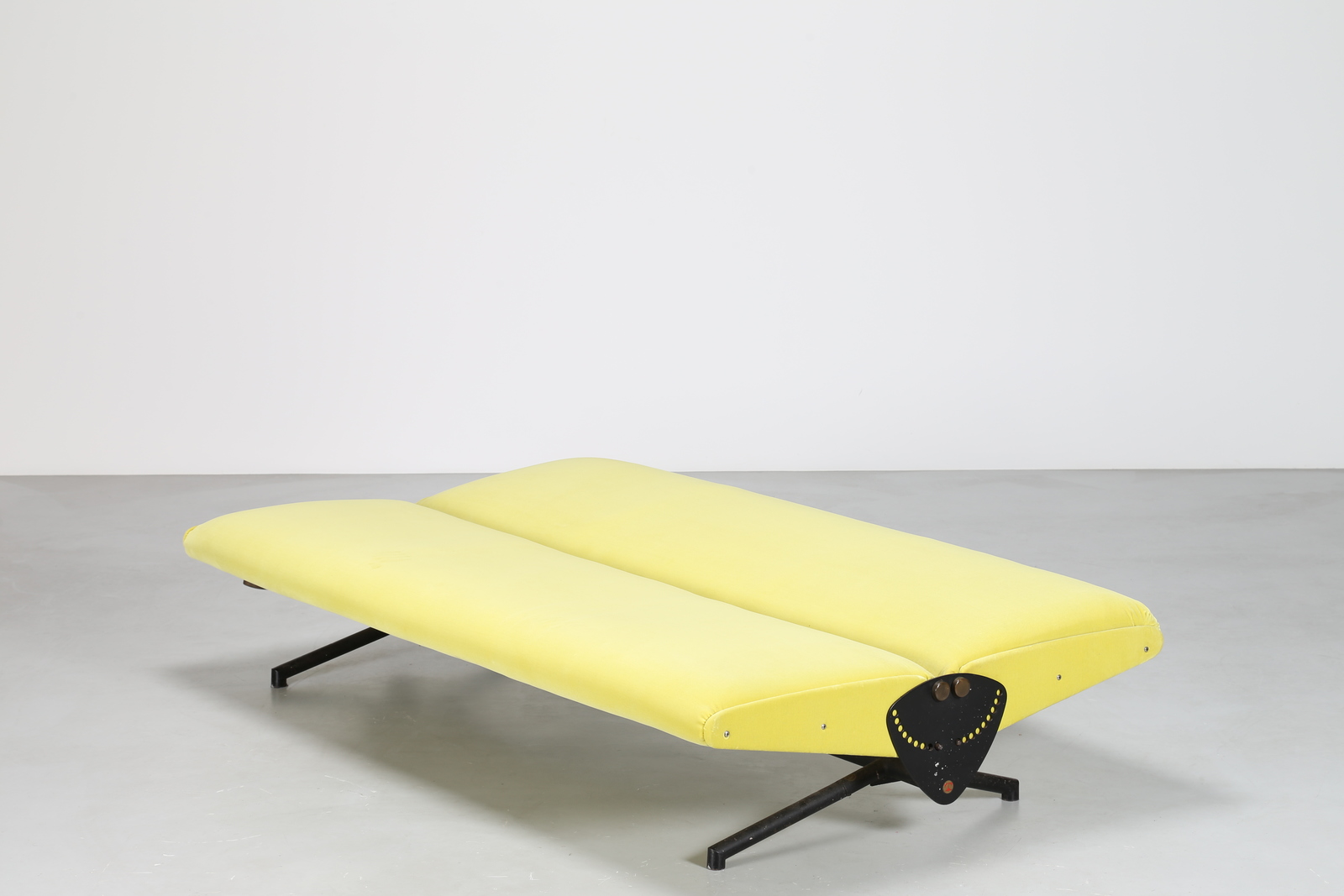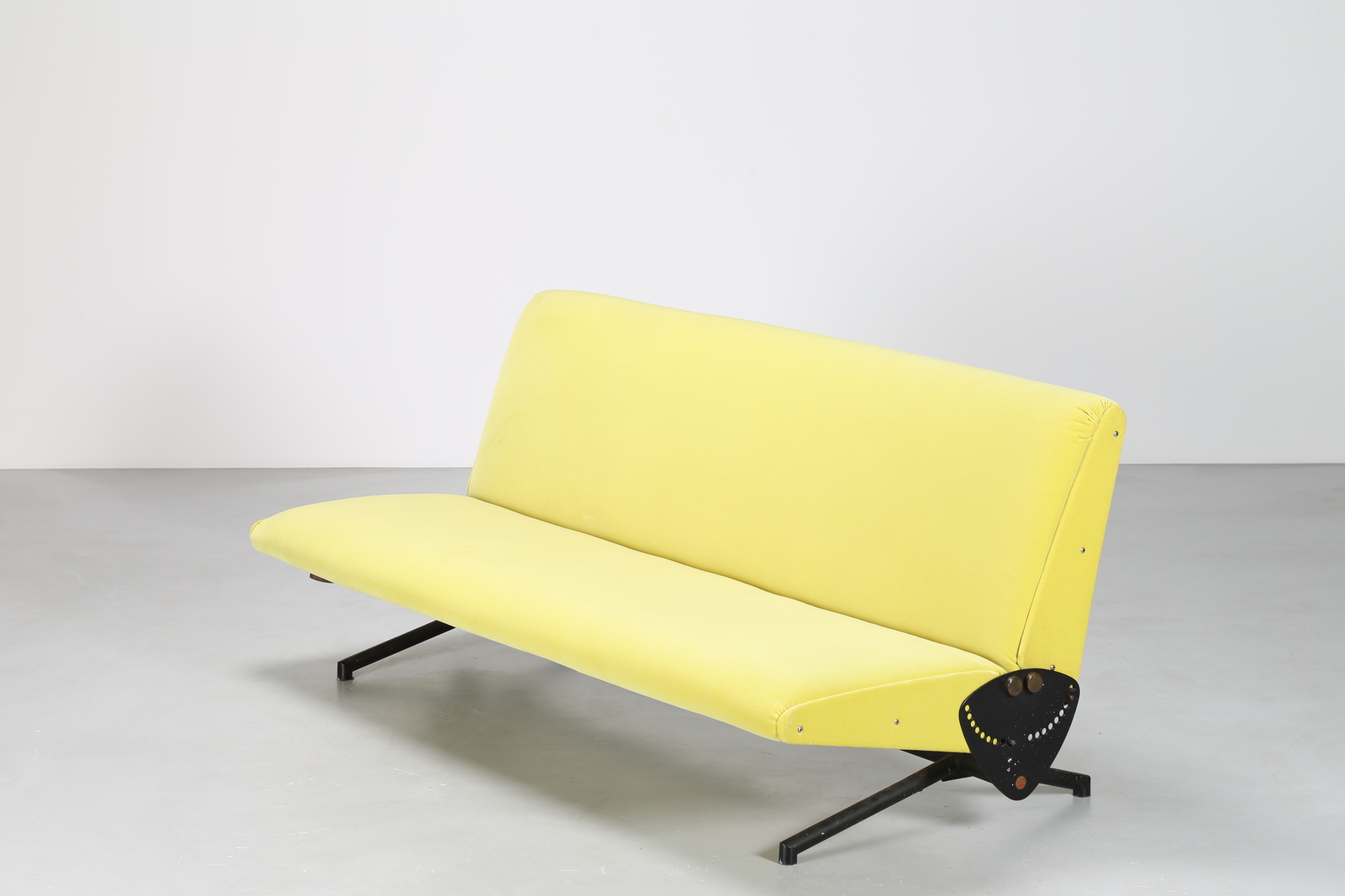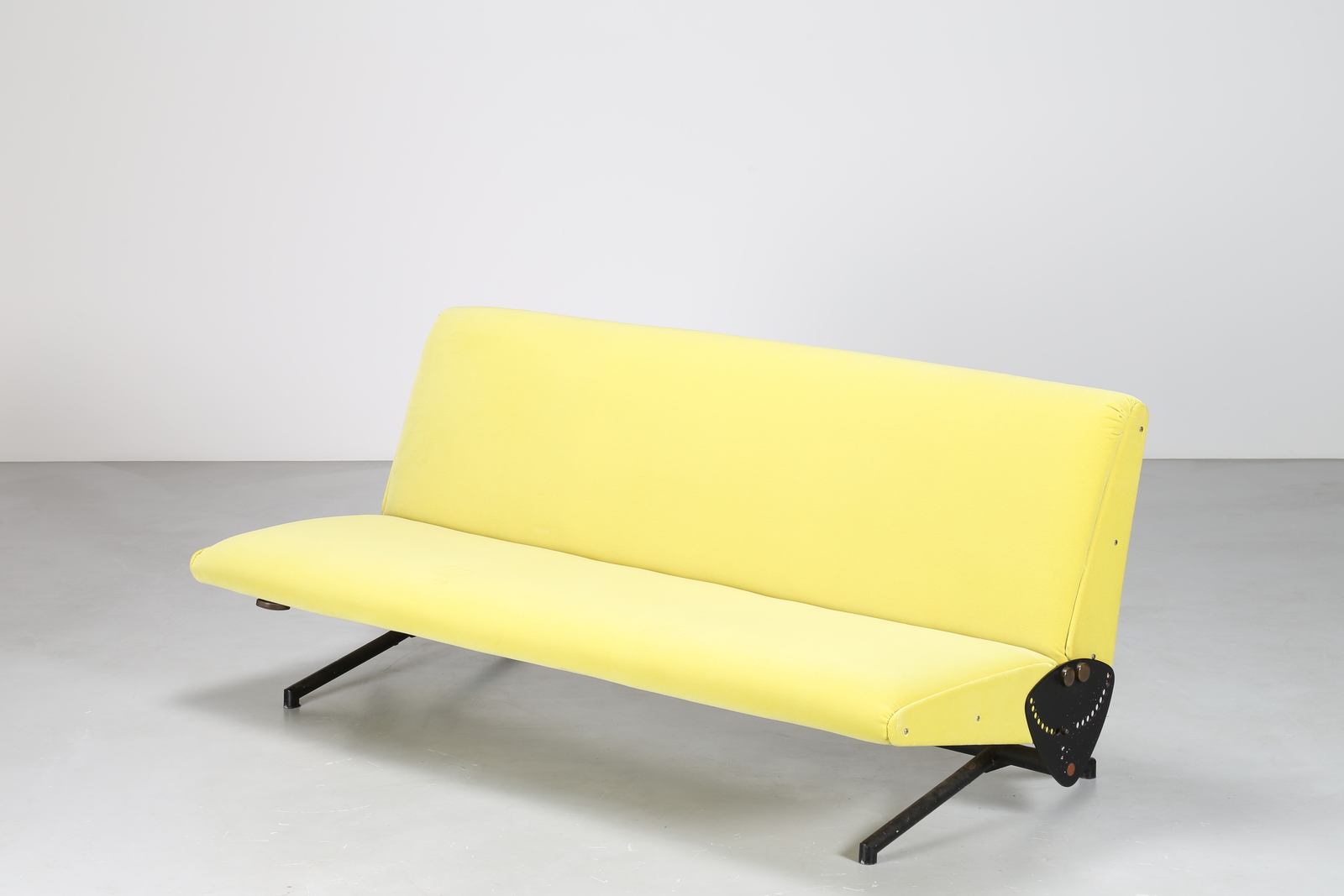 BORSANI OSVALDO (1911 - 1985) Divano letto mod. D70 struttura mobile in metallo e tessuto, presentato alla Decima Triennale nel 1953, prod. Tecno1954. Bib. G. Gramigna e F. Irace, Osvaldo Borsani, p. 252-256, Leonardo De Luca Editori, 1992; G. Gramigna, Repertorio 1950-80, p. 80 Mondadori, 1985. G. Gramigna, Repertorio del design italiano 1950 - 2000 per l'arredamento domestico, Allemandi, 2007, vol. II, pag. 580 . Tessuto e metallo. Cm 196,00 x 79,00 x 110,00. anni 50