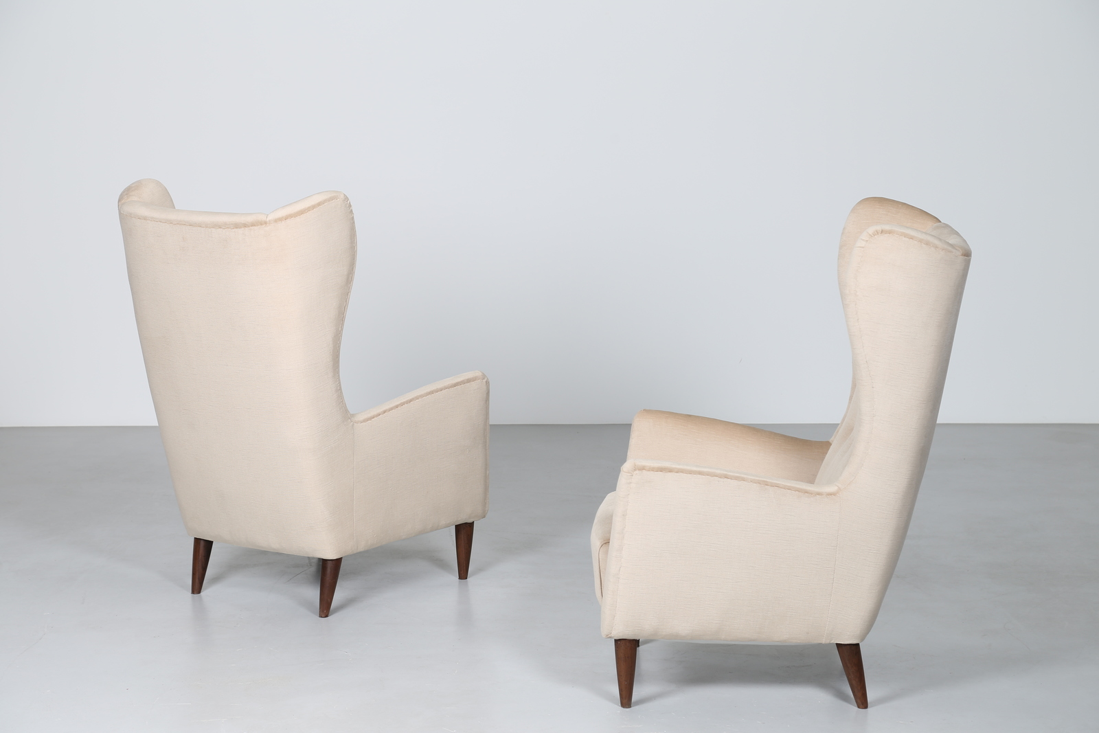 PONTI GIO' (1891 - 1979) Coppia poltrone in velluto beige e piedini in legno...