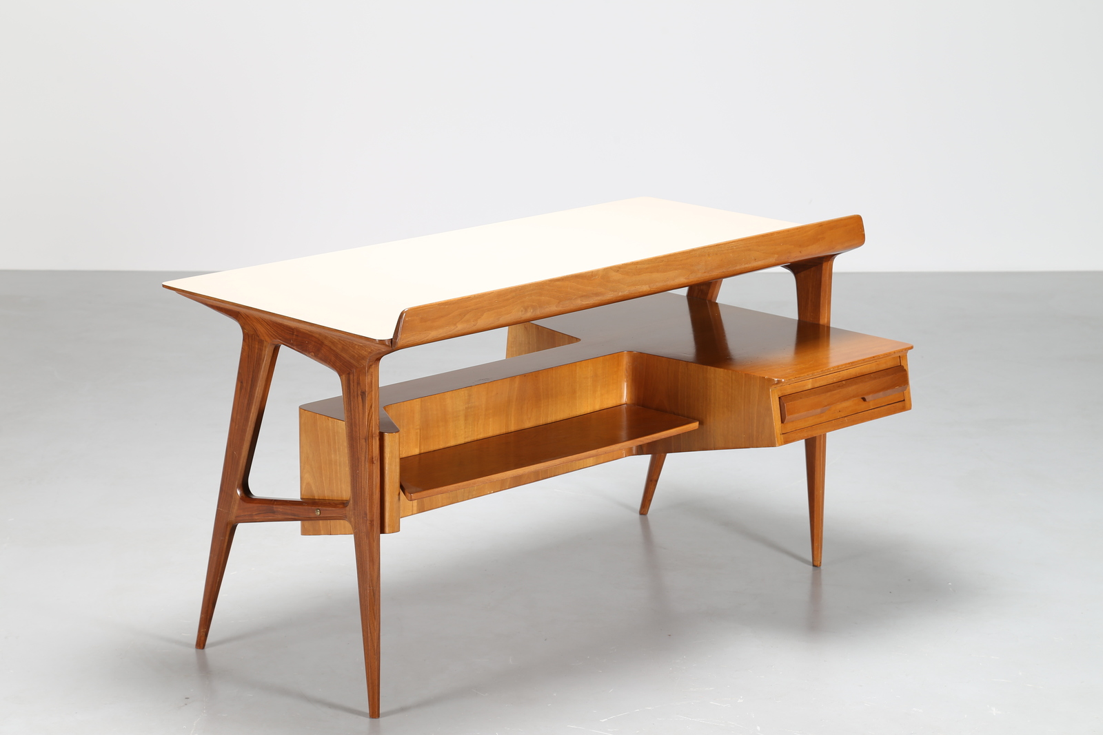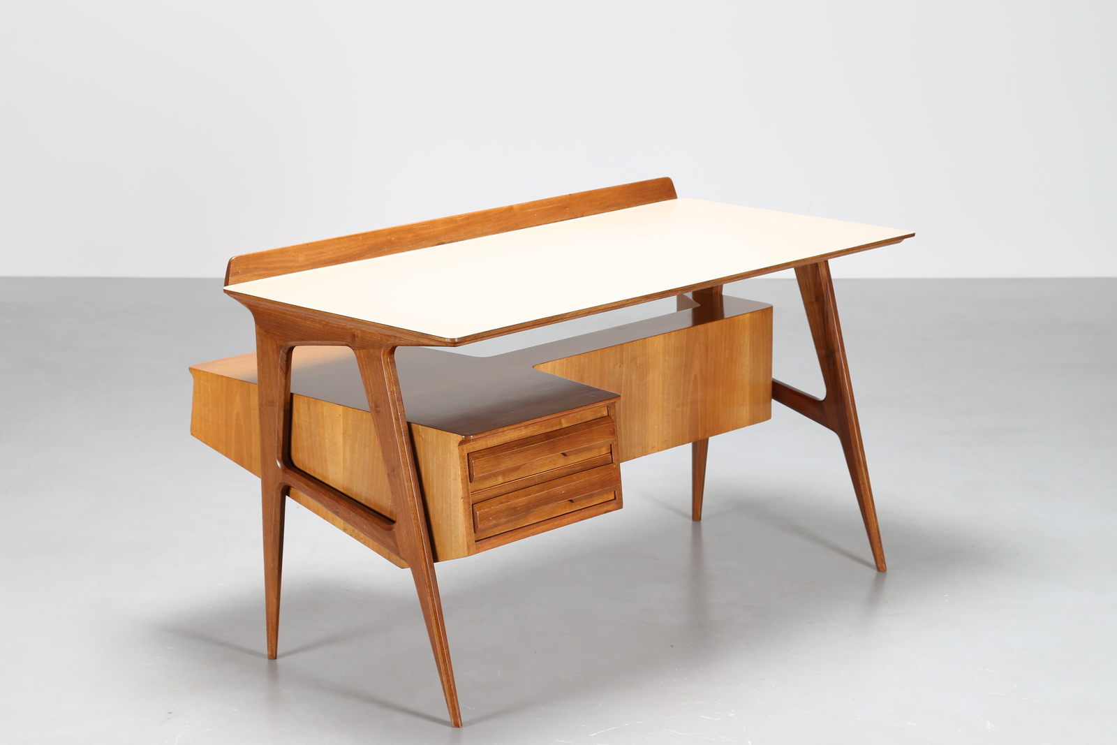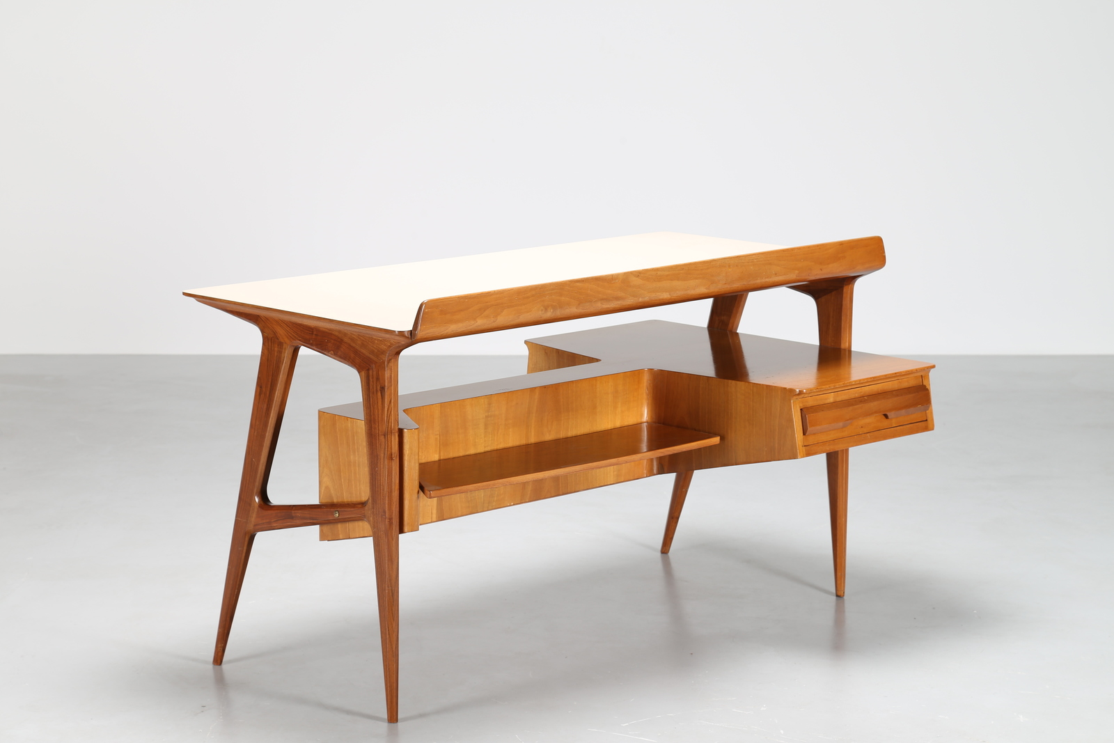 SAIBENE GIOVANNI Scrittoio in ciliegio e pero con piano in formica, proveniente da casa V. in Mestre il cui arredamento fu realizzato con la collaborazione e sistemazione di Edra Radici, 1956. Legno di noce e formica. Cm 136,50 x 79,50 x 82,00.