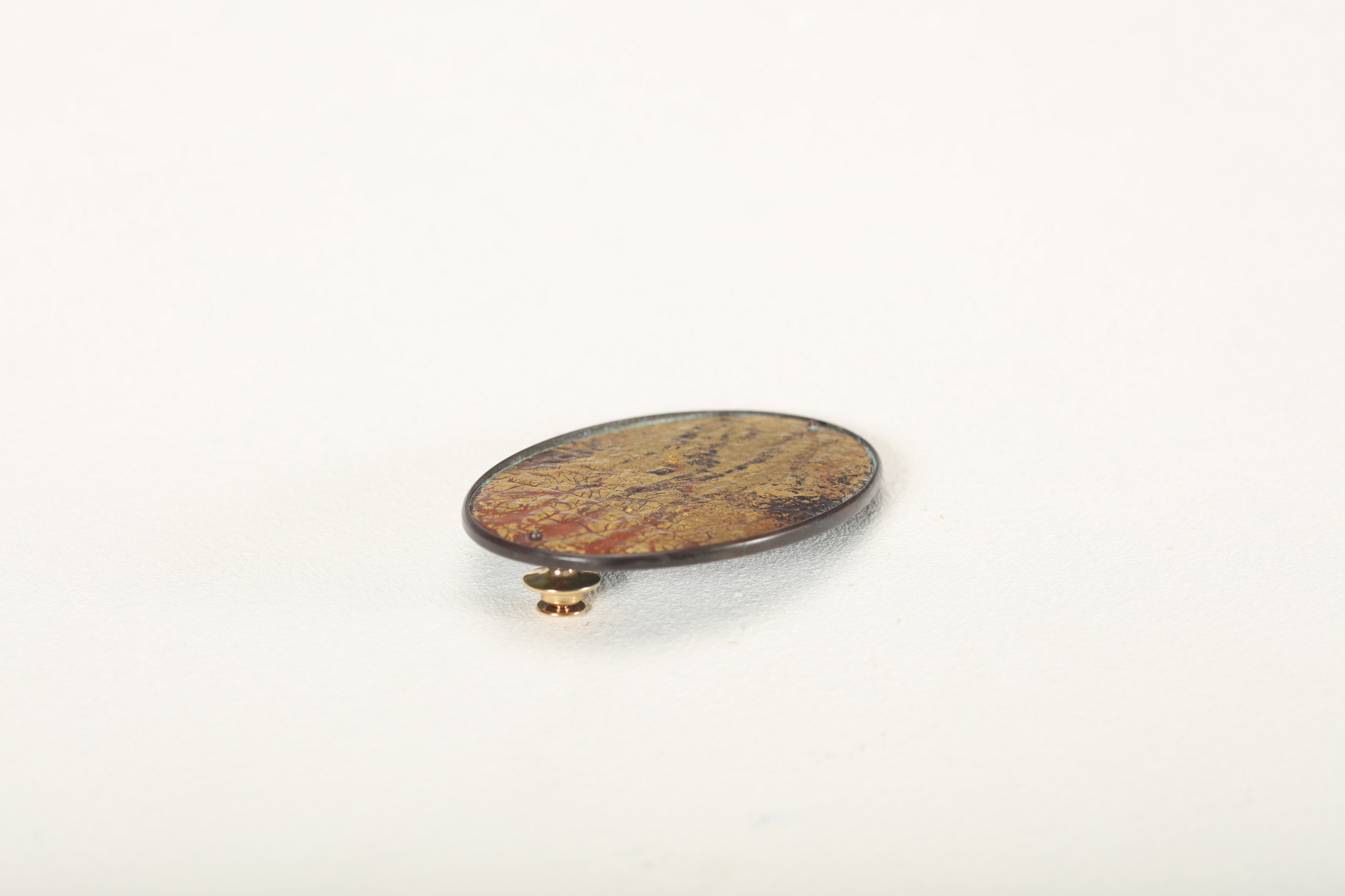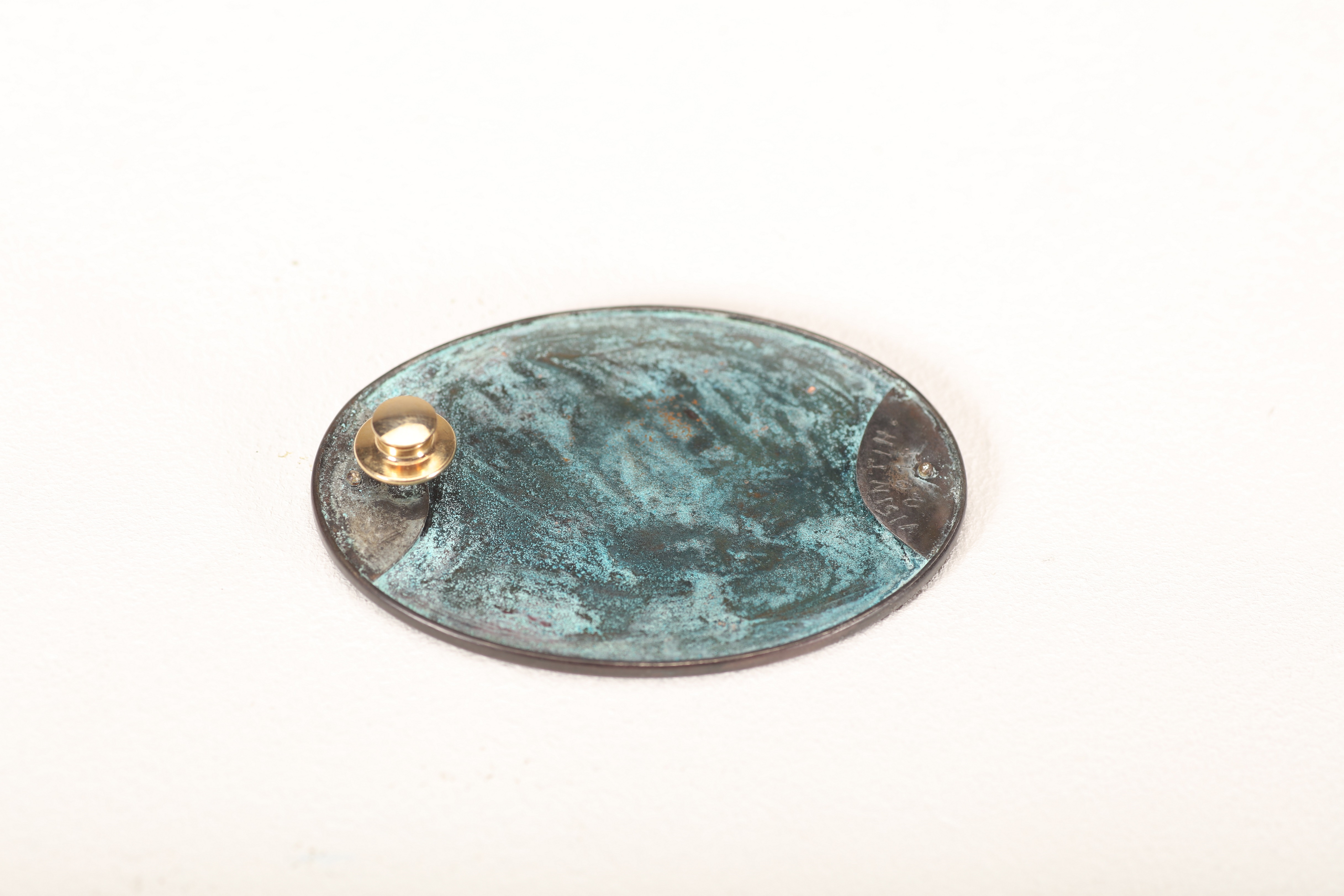 VISINTIN GRAZIANO Spilla . 2015. Argento, rame, smalto e foglia in oro. Cm 4,90 x 6,80.