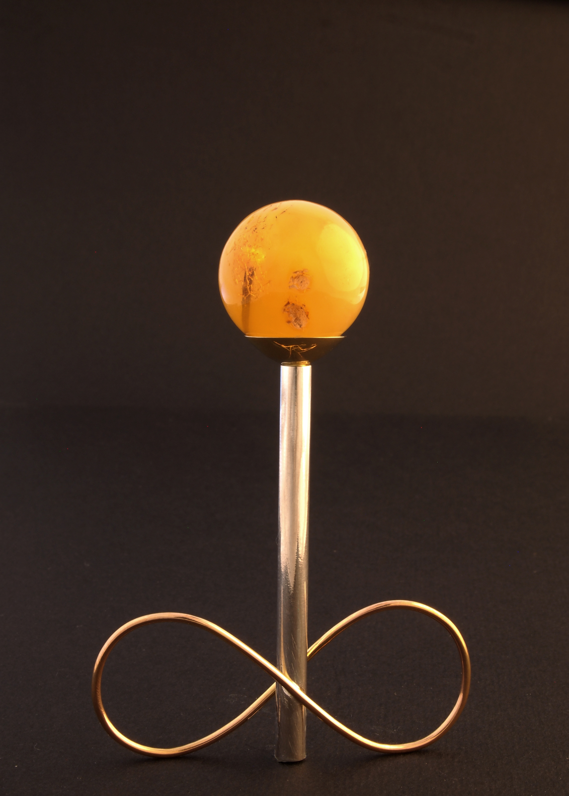 DI CIAULA FRANCESCA (n. 1960) Anello The Portal. 2014. Oro rosso, oro giallo, argento e ambra. Cm 5,40 x 7,00 x 2,30. Anello per due dita. Oro 18k.