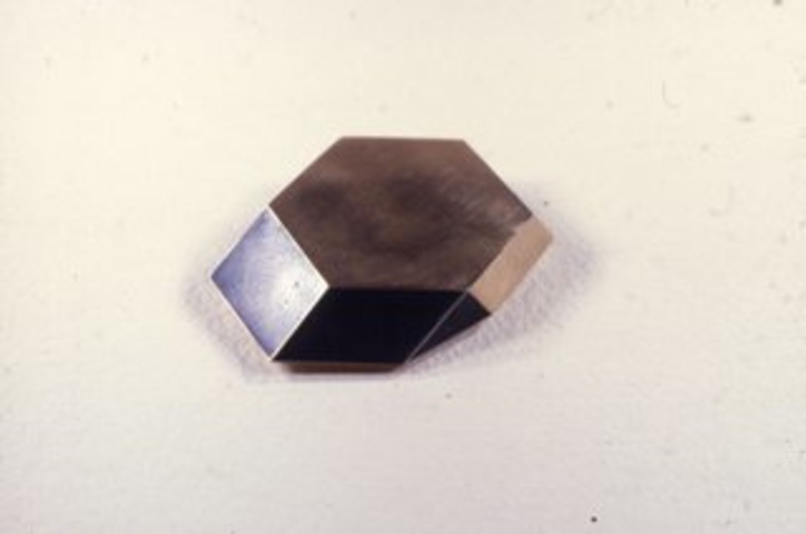 REVEANE PIERGIULIANO (n. 1943) Spilla Esagono. 1990. Oro e niello. Cm 4,00 x 5,60 x 1,00. Pubblicazioni: Rivista Antiquario, Aprile 1993. Esposizioni: Castello Sforzesco, Milano.