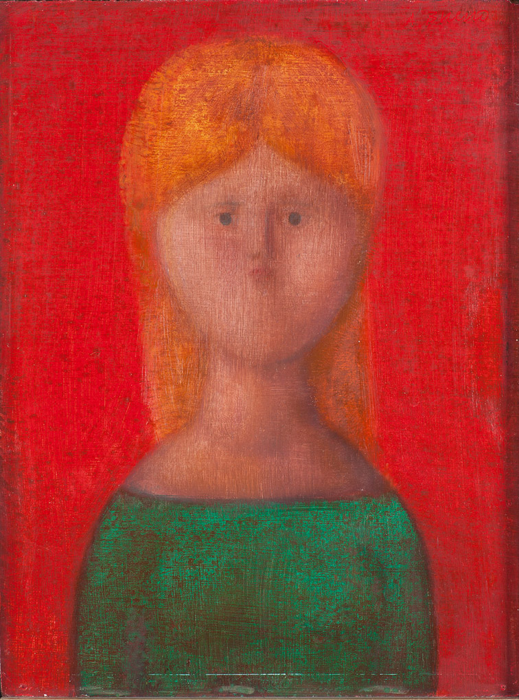 ANTONIO BUENO Berlino 1918 – Fiesole 1984 RITRATTO DI BAMBINA olio su panforte, cm 40x30. Firmato in alto a destra: A Bueno