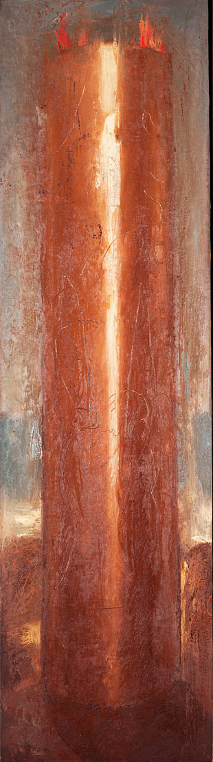 OMAR GALLIANI Montecchio Emilia 1954 TI ATTRAVERSÒ L’ULTIMA LUNA, 1987 olio su tela, cm 192x53. Data e fi rma al verso sulla tela: 1987 Galliani Titolo e data al verso sul telaio: Ti attraversò l’u1987ltima luna