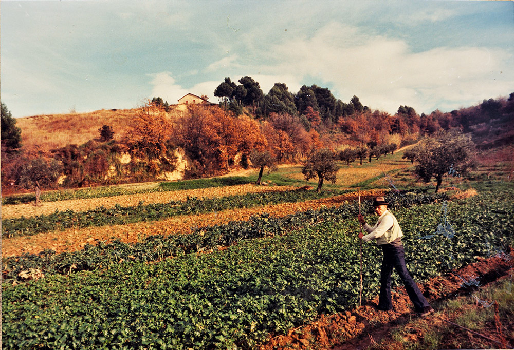 JOSEPH BEUYS Krefeld 1921 – Düsseldorf 1986 JOSEPH BEUYS, “OPERAZIONE DIFESA DELLA NATURA” ARATURA BIOLOGICA, SAN SILVESTRO COLLI, 1975 fotografi a a colori, cm 18,5x27. Foto Buby Durini, Archivio storico De Domizio Durini (timbro al verso).