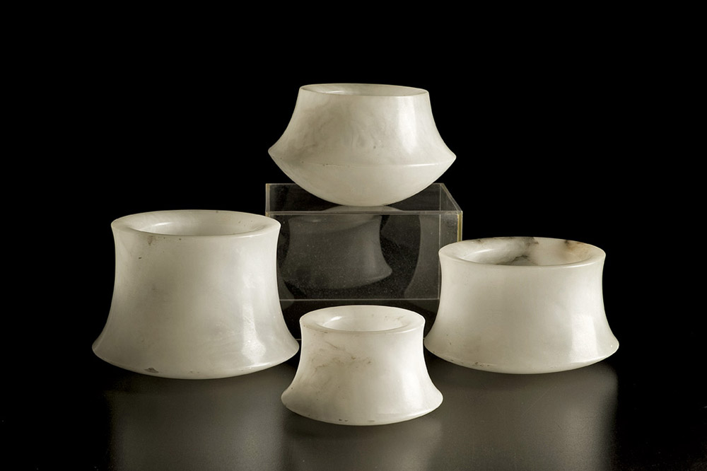 LOTTO DI 04 VASI IN ALABASTRO, TORNITO E DISEGNATI PER LA SOCIETÀ ARTIERI DI VOLTERRA 1981. altezze cm 10,5; cm 9; cm 8,5; cm 6,5.