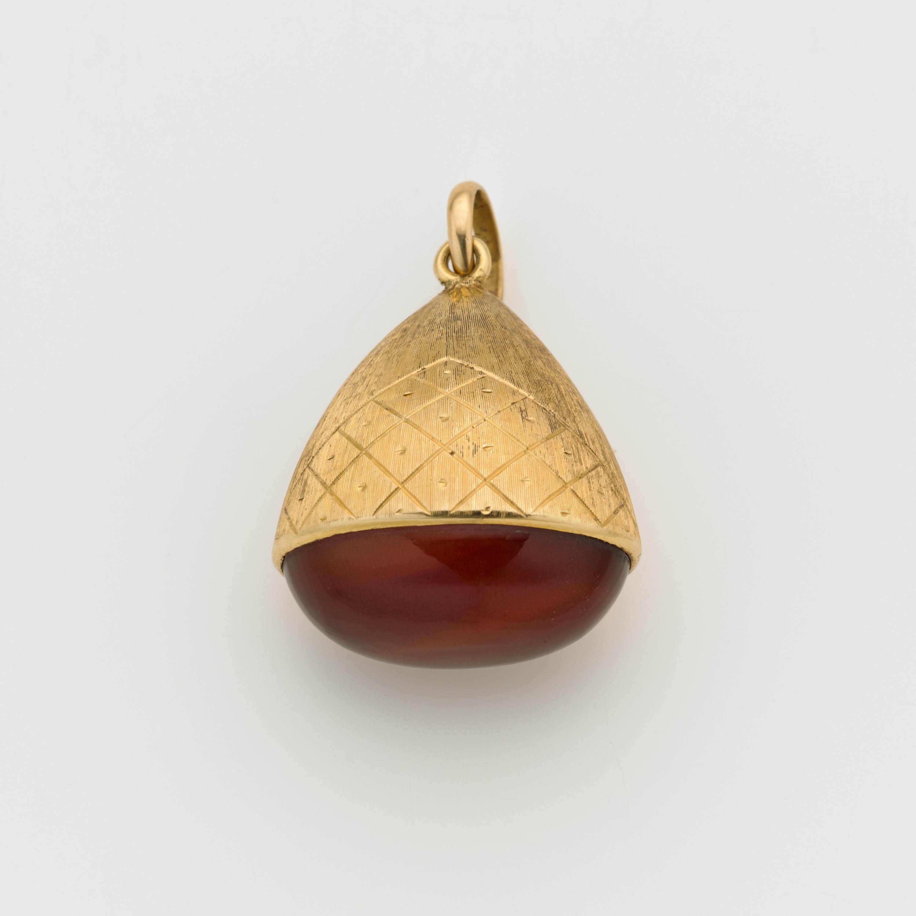 Ciondolo in oro giallo lucido e satinato a tenere una corniola ovale taglio...