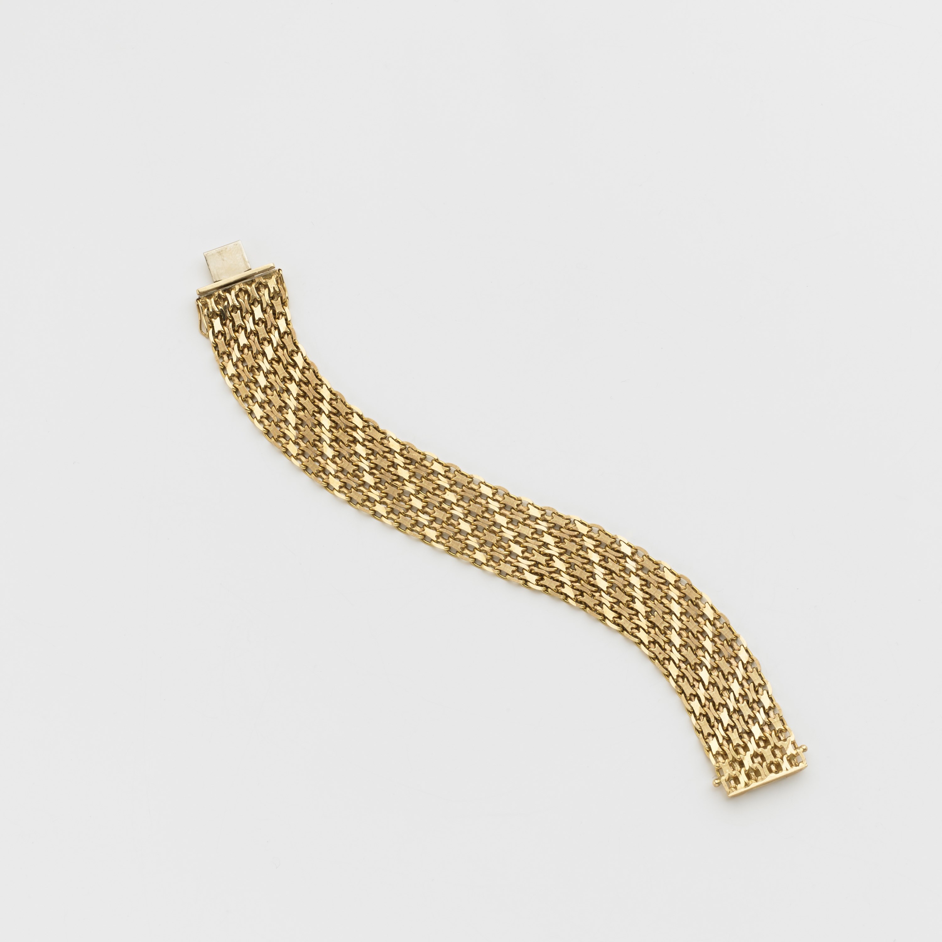 Bracciale a maglia in oro giallo liscio e zigrinato h cm 1,80 lungh. cm 19 g. 36,9 Gold mesh bracelet