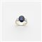 Anello in oro bianco e giallo con due diamanti rotondi taglio a brillante per totali ct 0,70 circa, ed al centro uno zaffiro ovale taglio composito di ct 4,50 circa g. 5,30 misura 21/61 Bi-coloured gold sapphire and diamond cluster ring