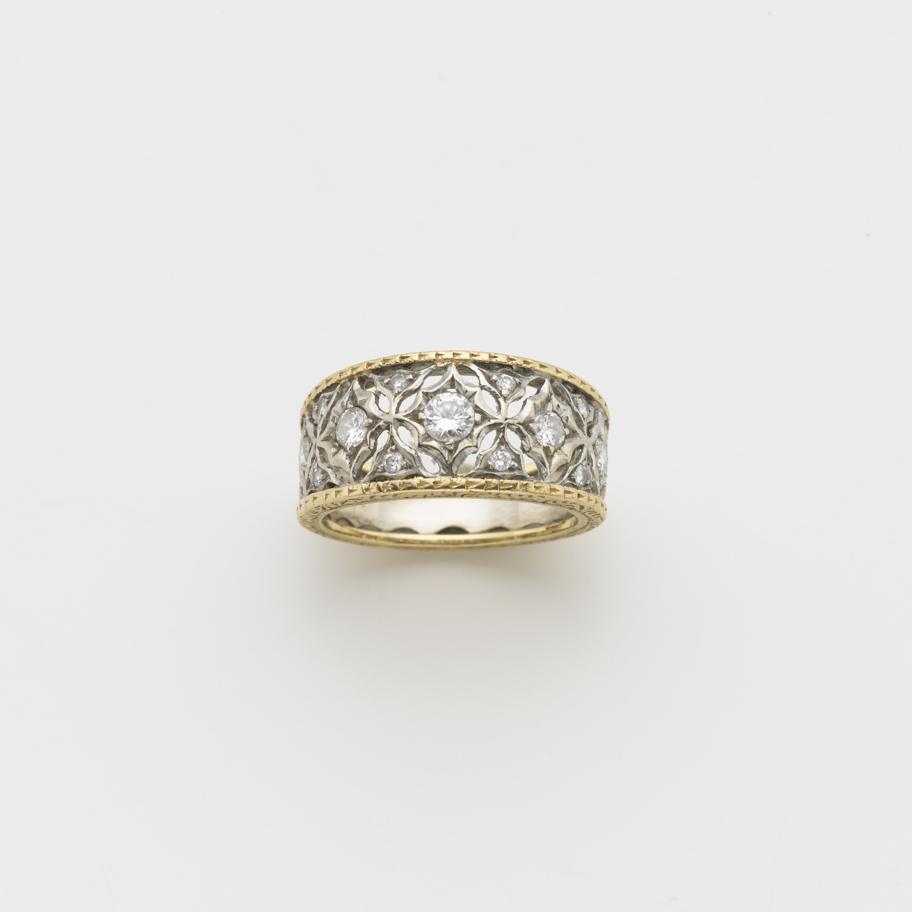 Anello in oro giallo e bianco con diamanti rotondi taglio a brillante g. 6,30 misura 15/55 Bi-coloured gold diamond ring