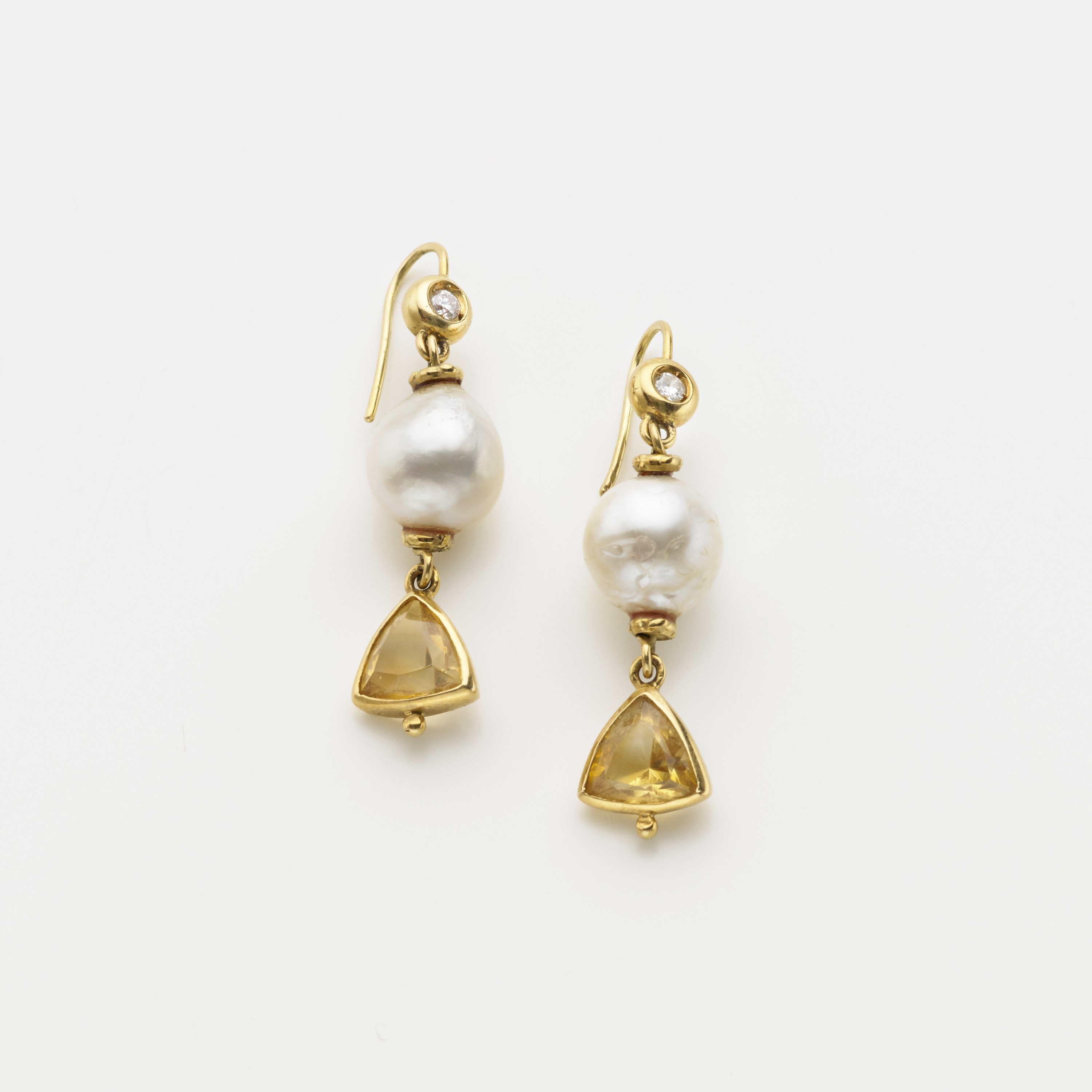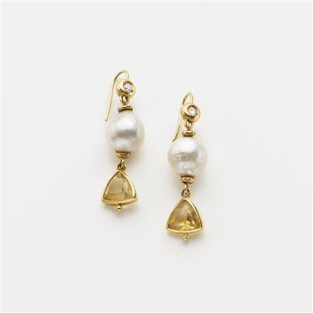 Lot 313 | MISANI Orecchini pendenti in oro giallo con quarzi citrini, diamanti e perle...