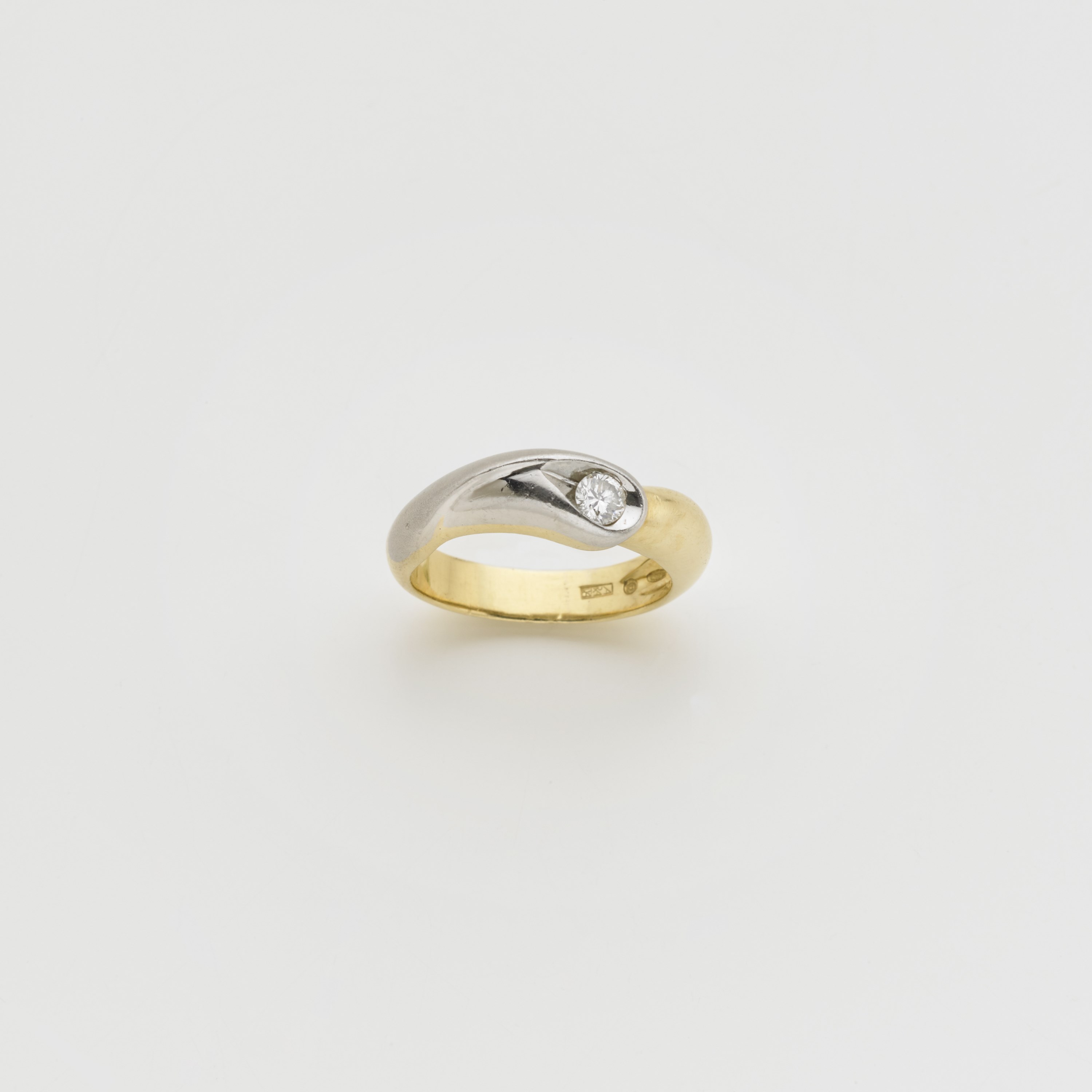 Anello in oro bianco e giallo con diamante solitario di ct 0,35 circa g. 7,20 Diamond single stone bi-coloured gold ring