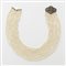 Collier a nove fili di perle bianche coltivate Akoja, scalate da 5 a 5,5 mm. lungh. primo filo interno cm 40 fino a cm 54. Chiusura in oro e argento, con diamanti irregolari ed un granato rosso aranciato ovale, taglio composito, ct.3,65 circa. Prov.: dono di Giambattista Marchese Guerrieri Gonzaga alla madre Emilia Marchesa Guerrieri Gonzaga, nata Vimercati Sanseverino, C.ssa di Palazzo Pignano Nine-strand graduated cultured Akoja pearl necklace, gold and silver clasp with irregular diamonds and a red-orange garnet Provenance: present from great uncle Giambattista Marquess Guerrieri Gonzaga to his mother Emilia Marchioness Guerrieri Gonzaga, born Vimercati Sanseverino, Countess Palazzo Pignano