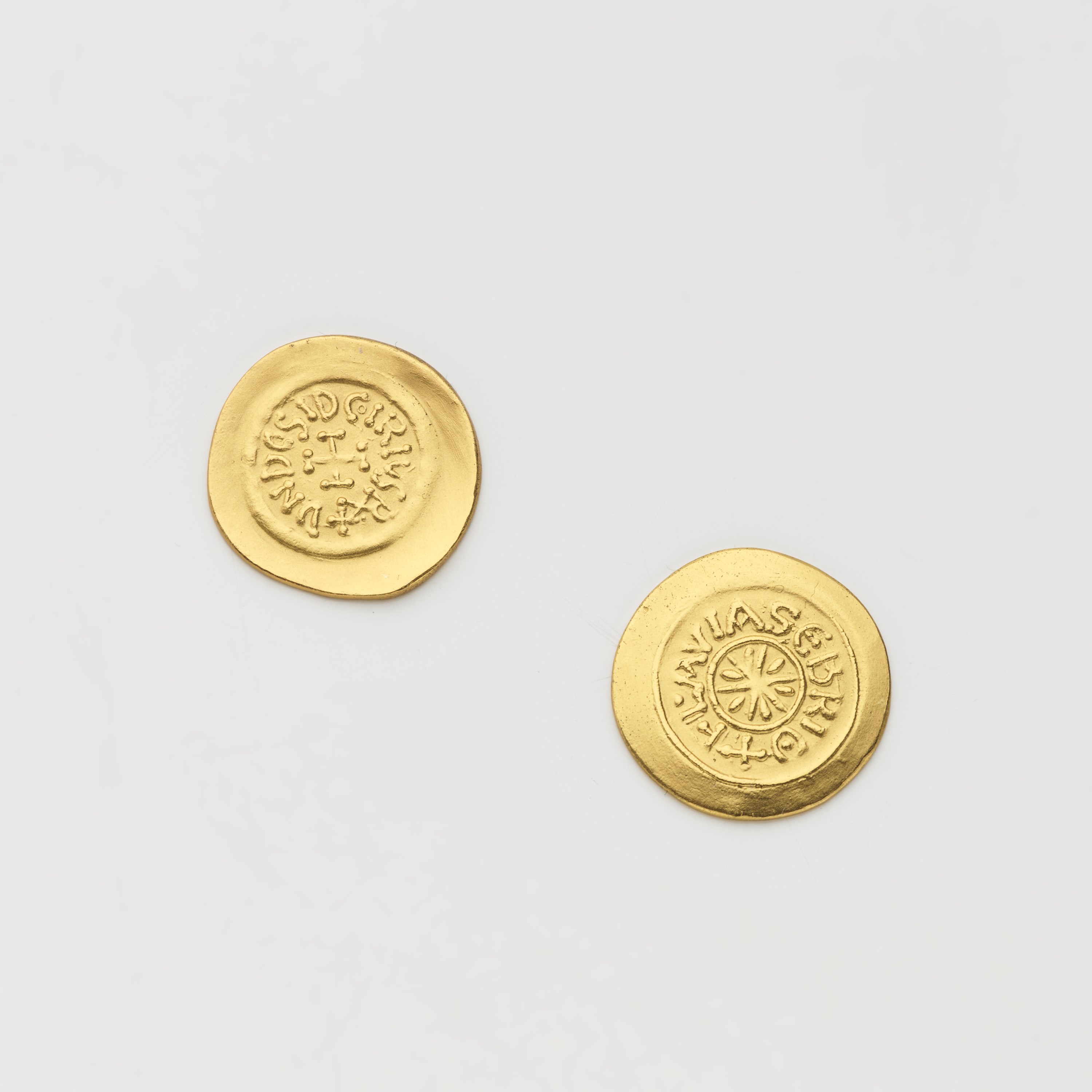 Due riproduzioni di Scodellati in oro g. 5,4 Two reproductions of gold...