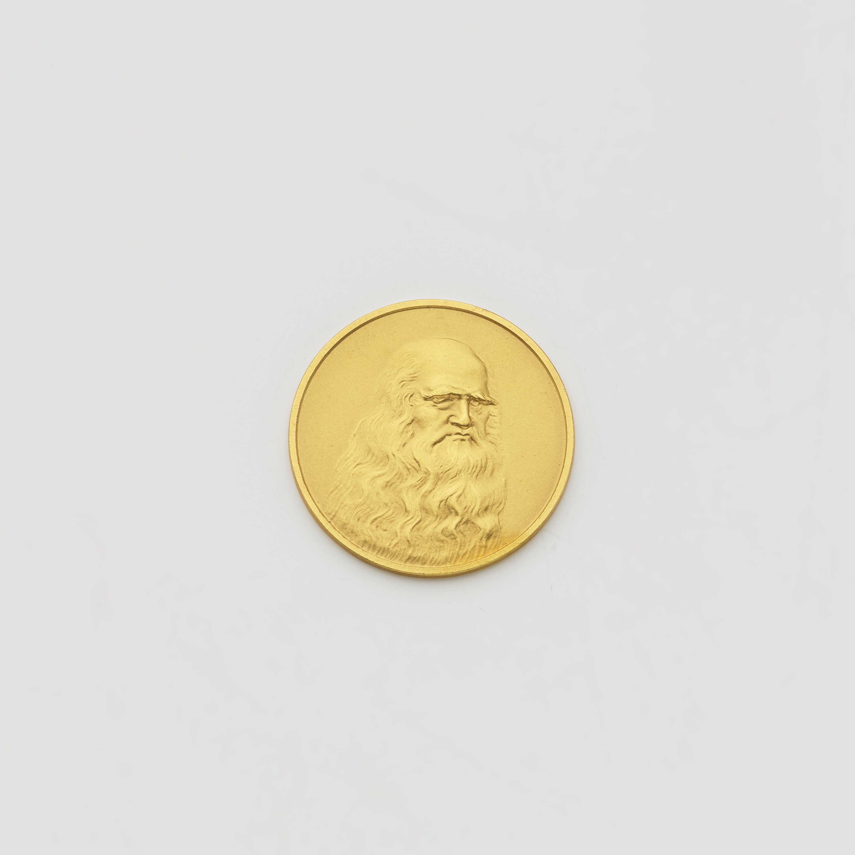 Medaglia commemorativa in oro raffigurante Leonardo da Vinci g. 8 Gold commemorative medal of Leonardo da Vinci