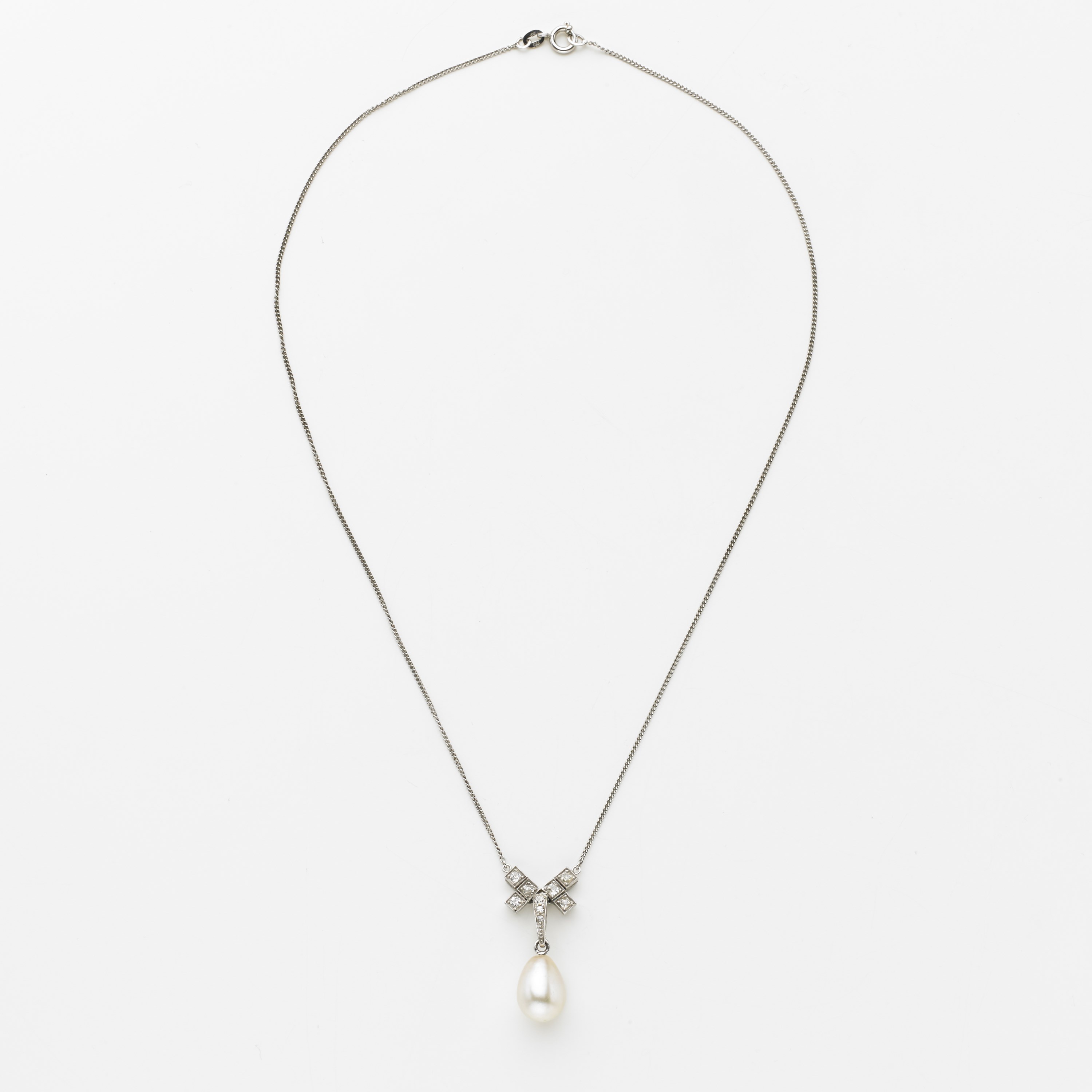Catenina in oro bianco con pendente in diamanti e perla naturale di acqua...