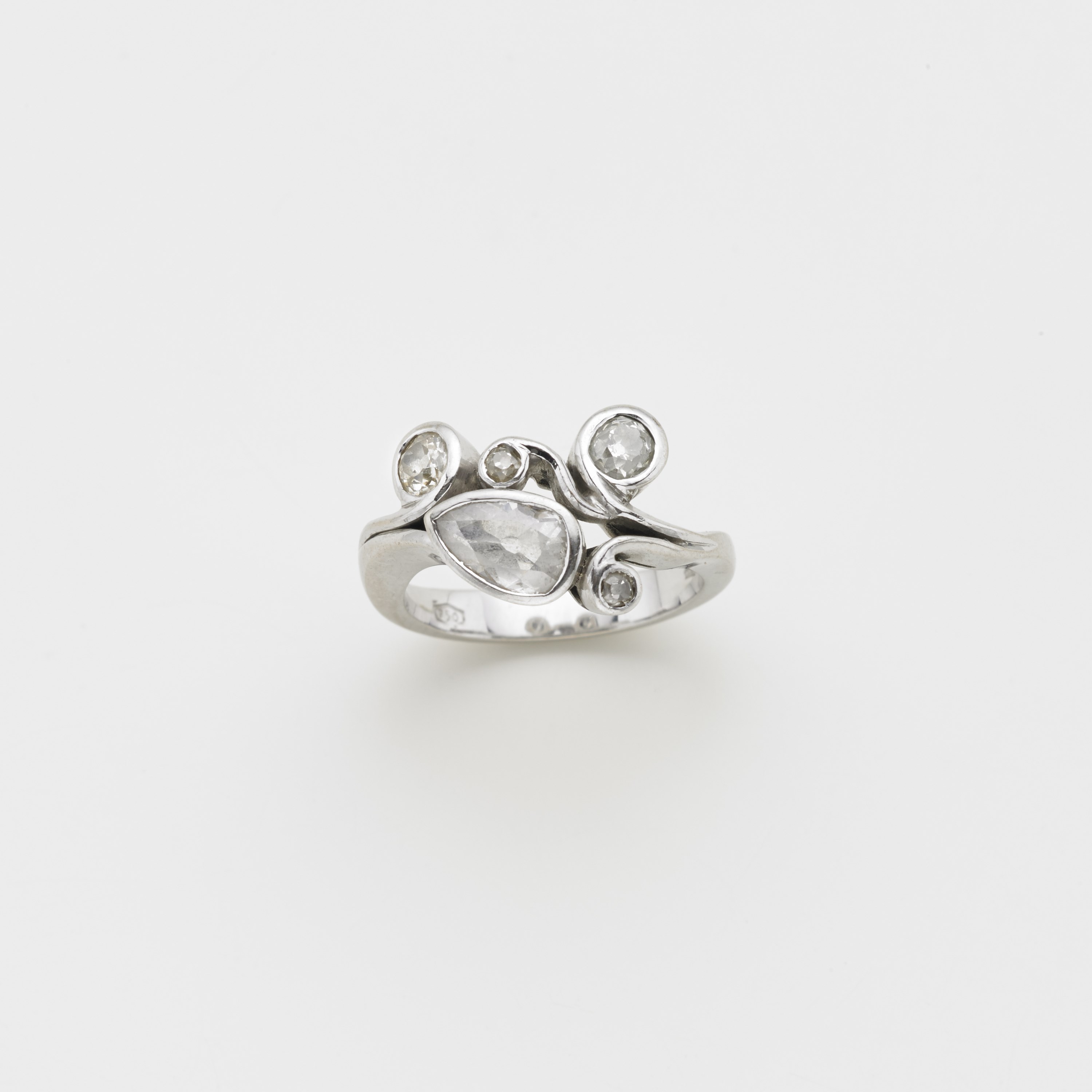 Lot 516 | Anello in oro bianco con diamante a goccia ed altri rotondi g. 7,70 misura...