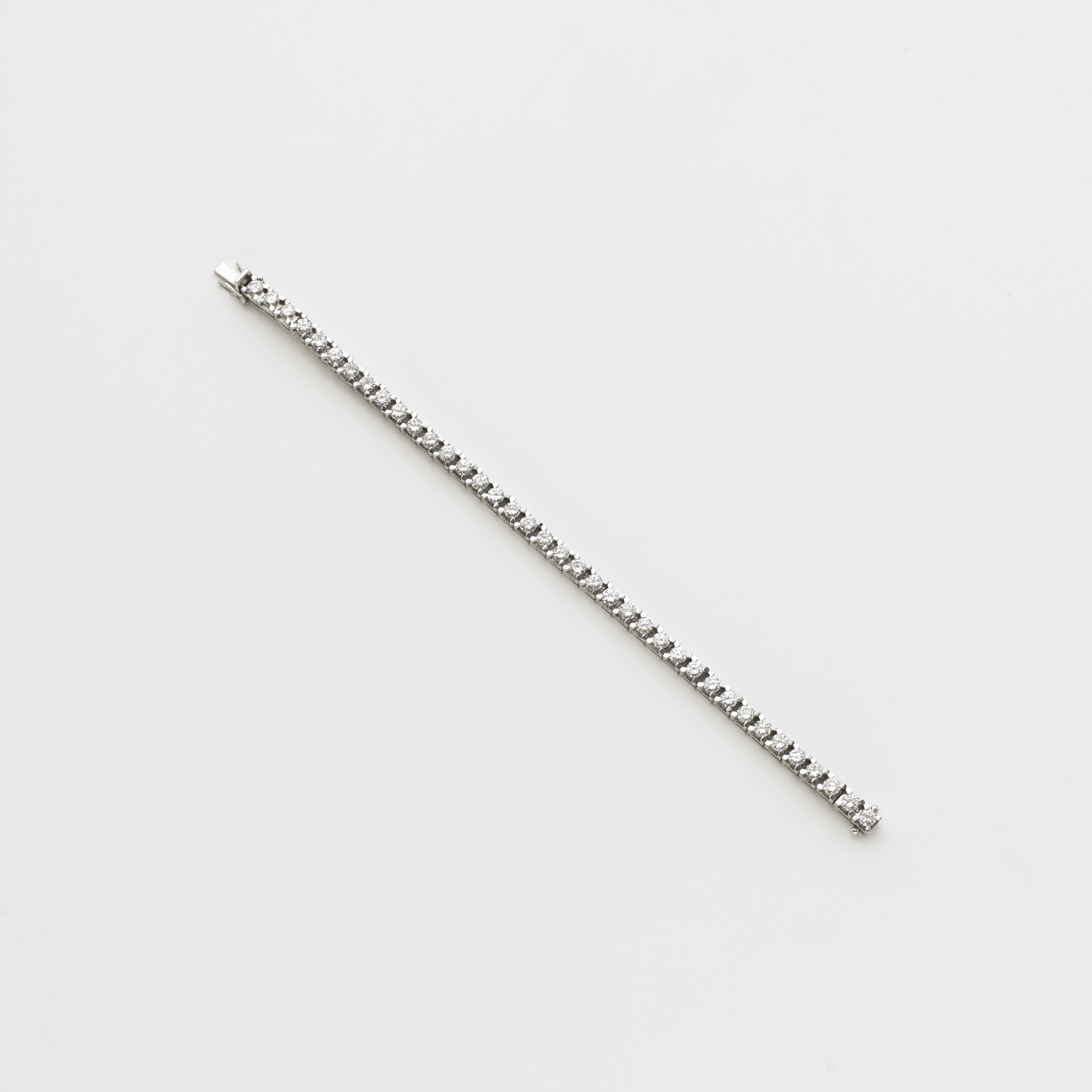 Bracciale tennis in oro bianco con 38 diamanti rotondi taglio a brillante per complessivi ct 6,00 circa g. 22,90 Diamond white gold tennis bracelet
