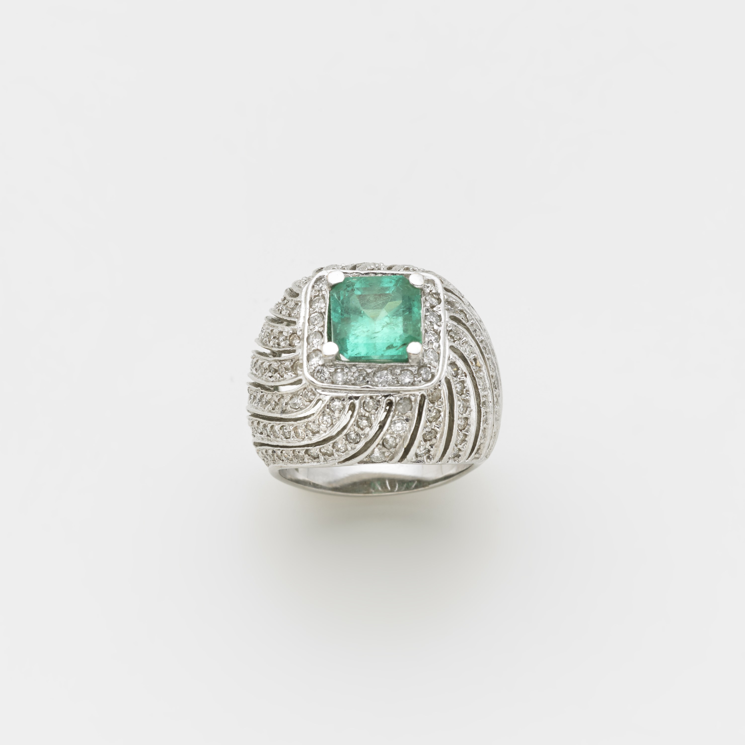 Lot 536 | Anello in oro bianco con diamanti a contornare uno smeraldo ottagonale g....