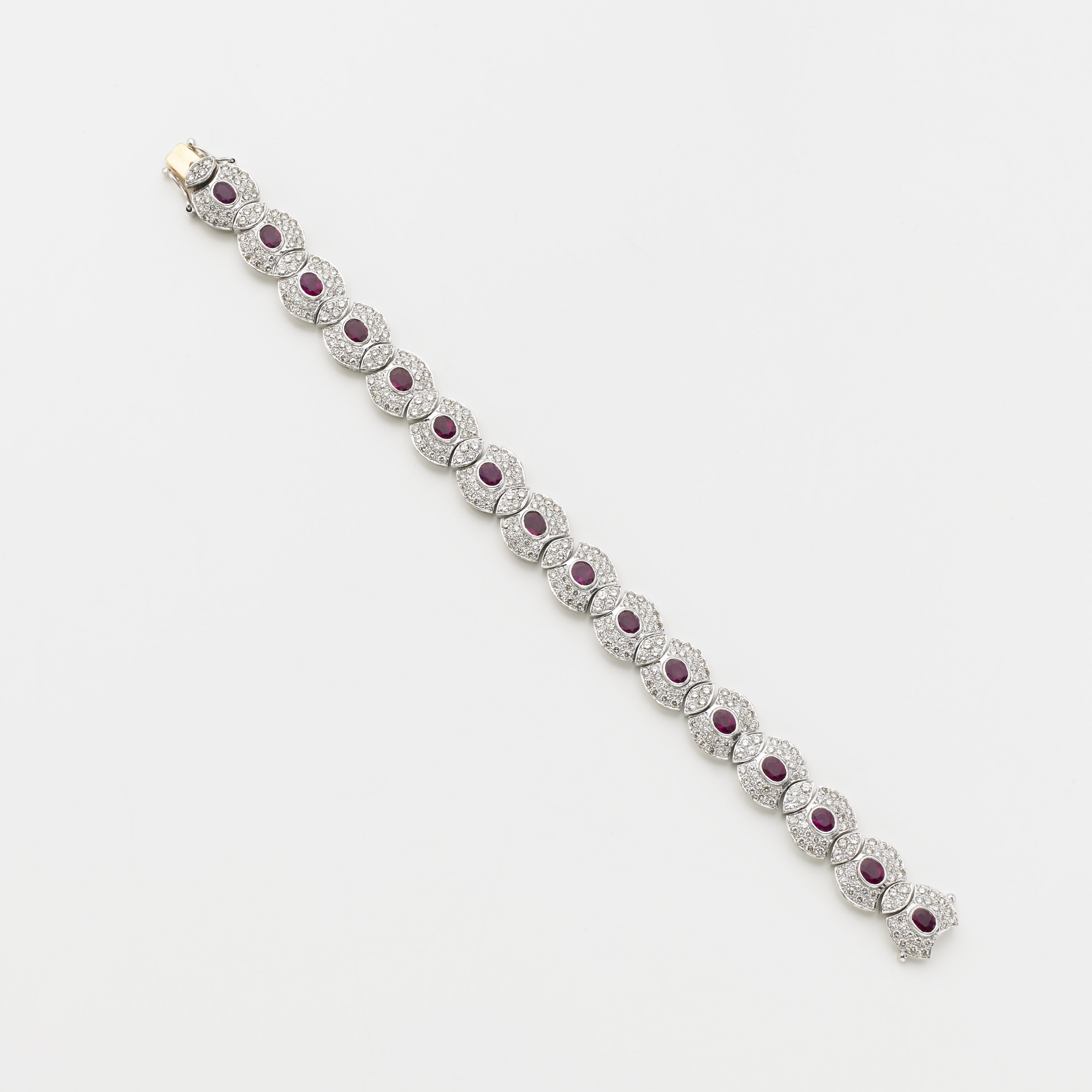 Bracciale in oro bianco con diamanti a pavÈ a contornare rubini ovali taglio composito g. 41,7 lungh. cm 19 Diamond set and ruby white gold bracelet