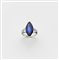 Anello in oro bianco con due diamanti triangolari ai lati di uno zaffiro a...