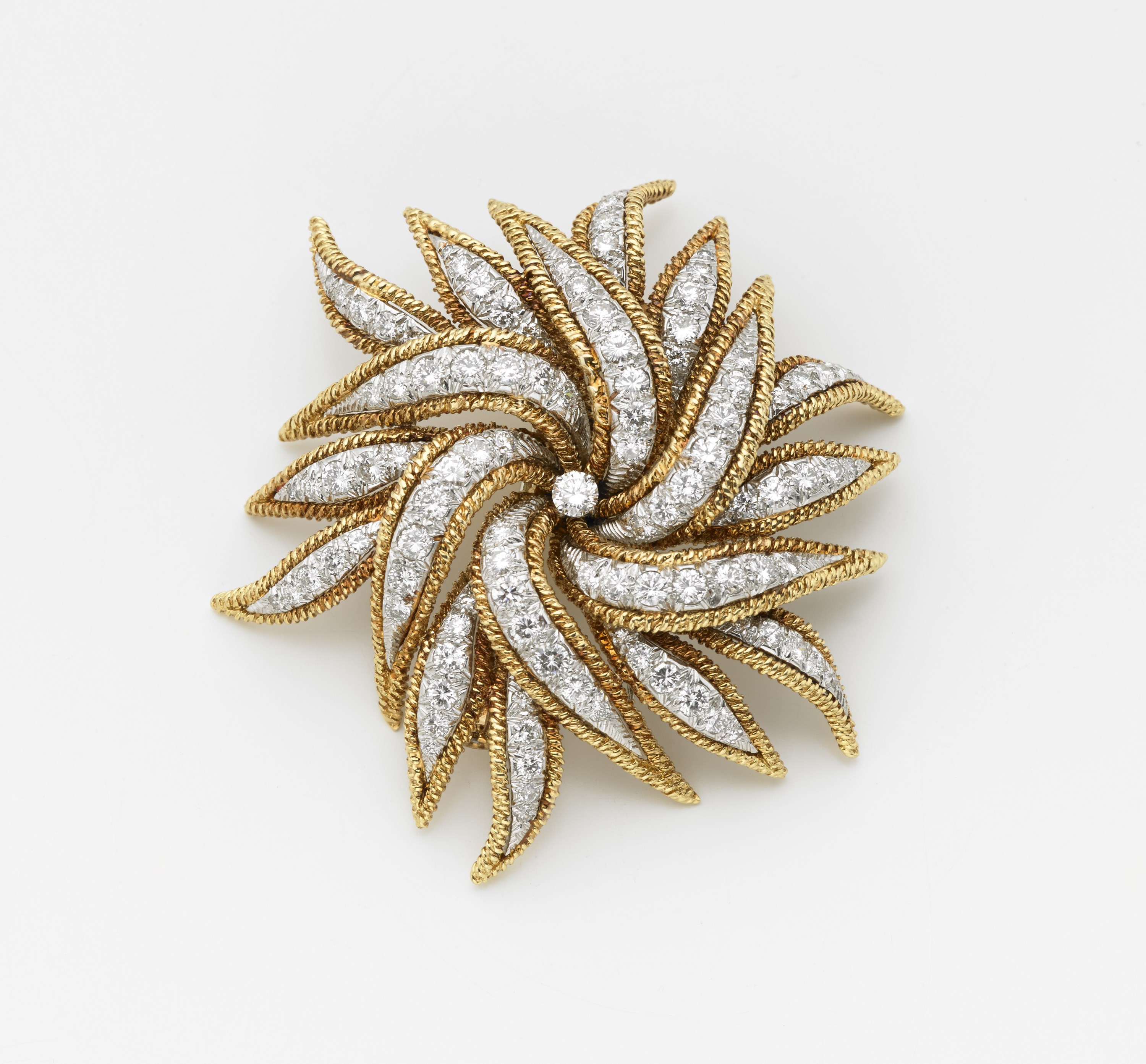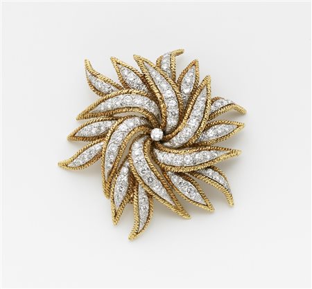 DAVID WEBB Broche floreale in oro giallo e platino con diamanti rotondi...