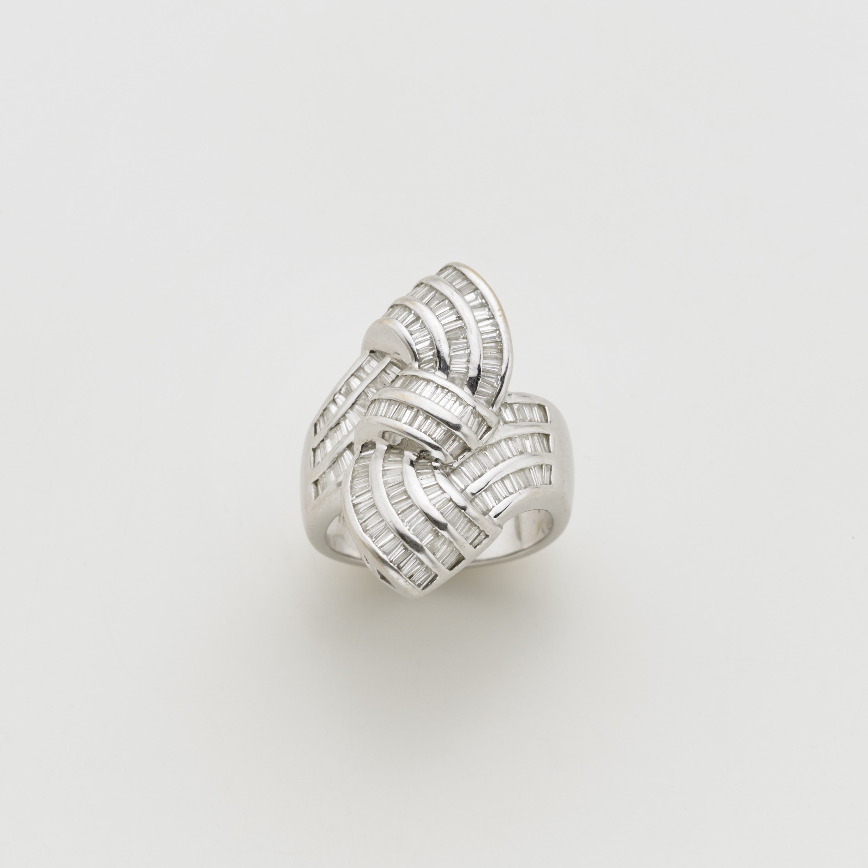 Anello in oro bianco a forma di fiocco con baguette g.13,30 misura 17/57 Diamond white gold bow ring